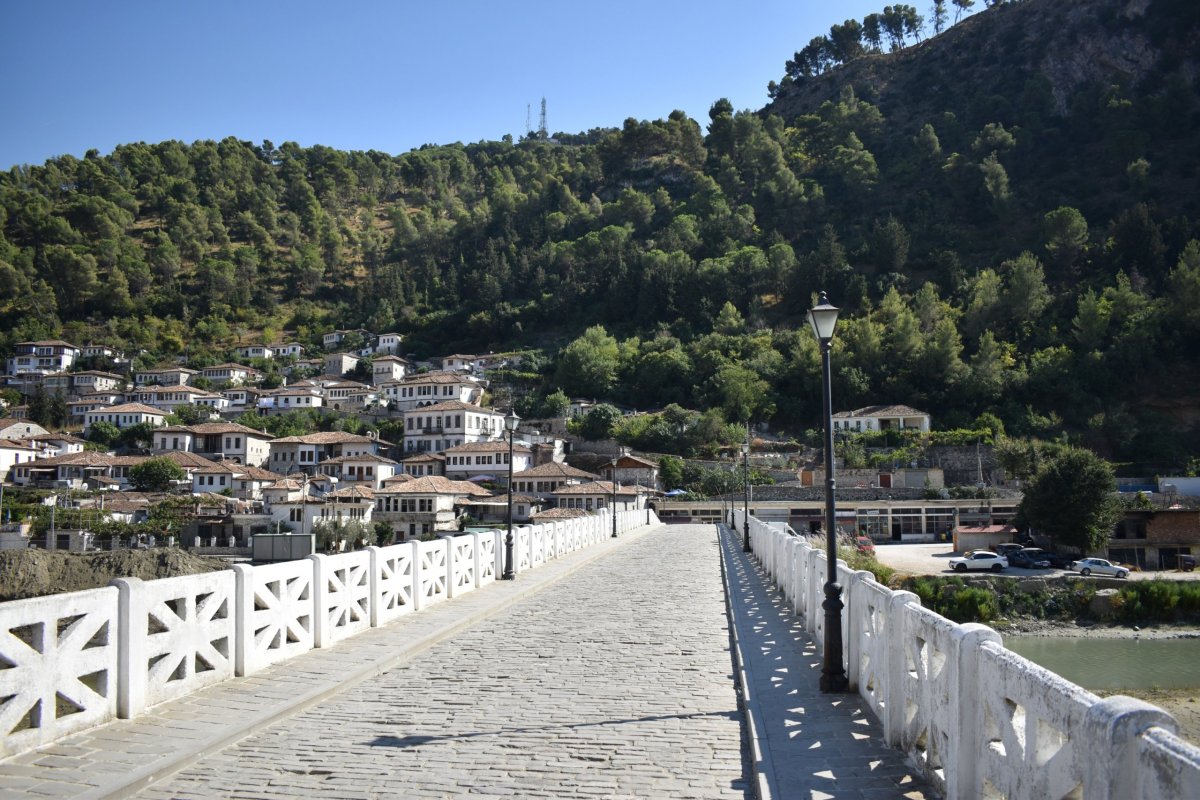 Po přistání se setkává více letadel najednou a tak vzniká docela dlouhá fronta a chaos na imigračním. Rychlost průchodu není největší, ale nakonec jsme v hale. Míříme ke stánku Vodafonu pro sim kartu a najít pána z autopůjčovny. U auta po nastartování sice svítí "check engine", ale prý je to ok:). Nakonec bylo. Po sepsání smlouvy a zaplacení (oboje proběhlo na kapotě auta, včetně platby kartou) mizíme směr Berat. Cesta nám trvá asi 2 hodiny a tak přijíždíme až k večeru. V dopravě ale žádná divočina, vše na pohodu. Ubytování máme na promenádě u řeky, centrum je kousek a je tu i malé parkoviště. White City hotel máme na dvě noci a jsme zde spokojeni.