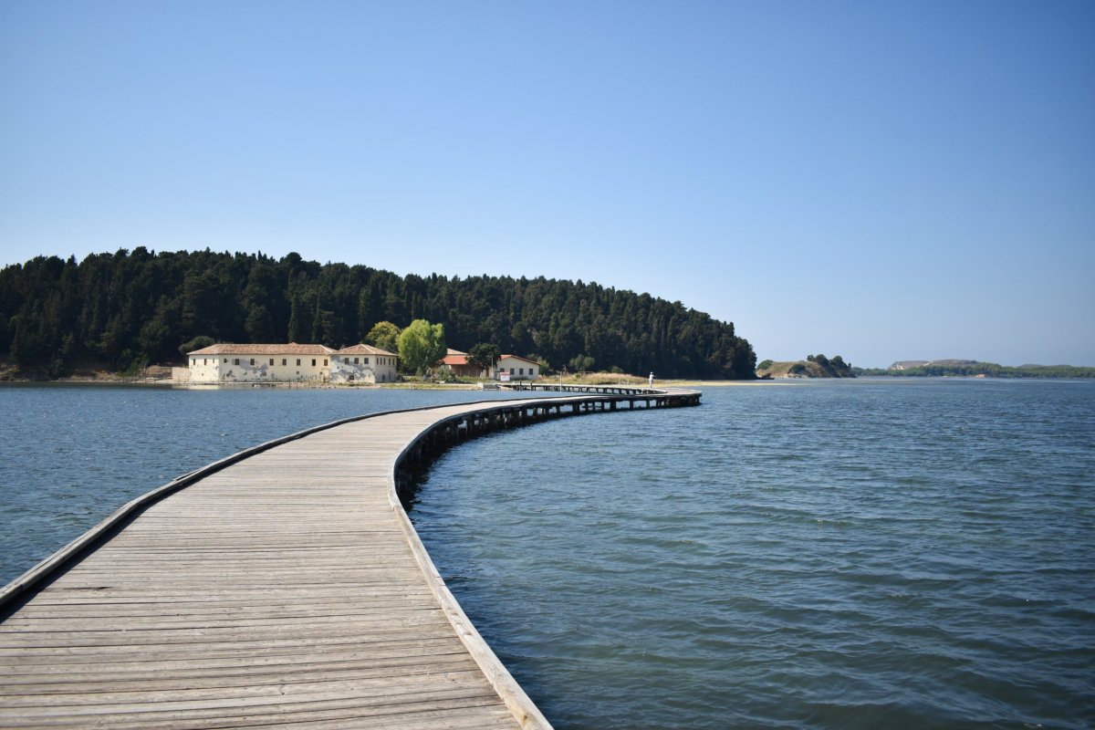 Frčíme dál do městečka Zvarnec, kde je k vidění zajímavý objekt. Uprostřed rozsáhlé laguny je malý ostrov, na kterém se nachází byzantský kostel a klášter ze 13. Století zasvěcený panně Marii. Ostrůvek je spojený s pevninou dřevěným chodníkem dlouhým asi 400m. Místa k parkování tu teda moc není, ale je vidět že je po sezóně, takže se vejdeme.