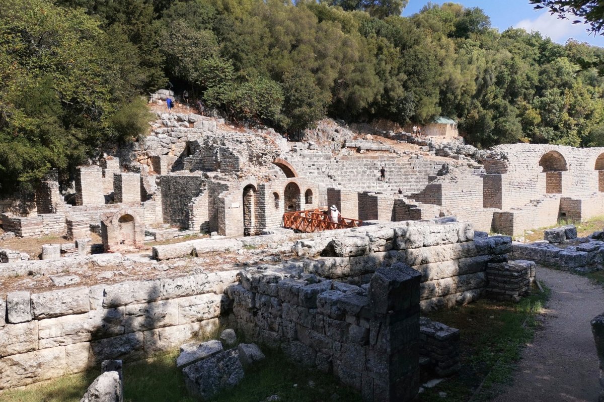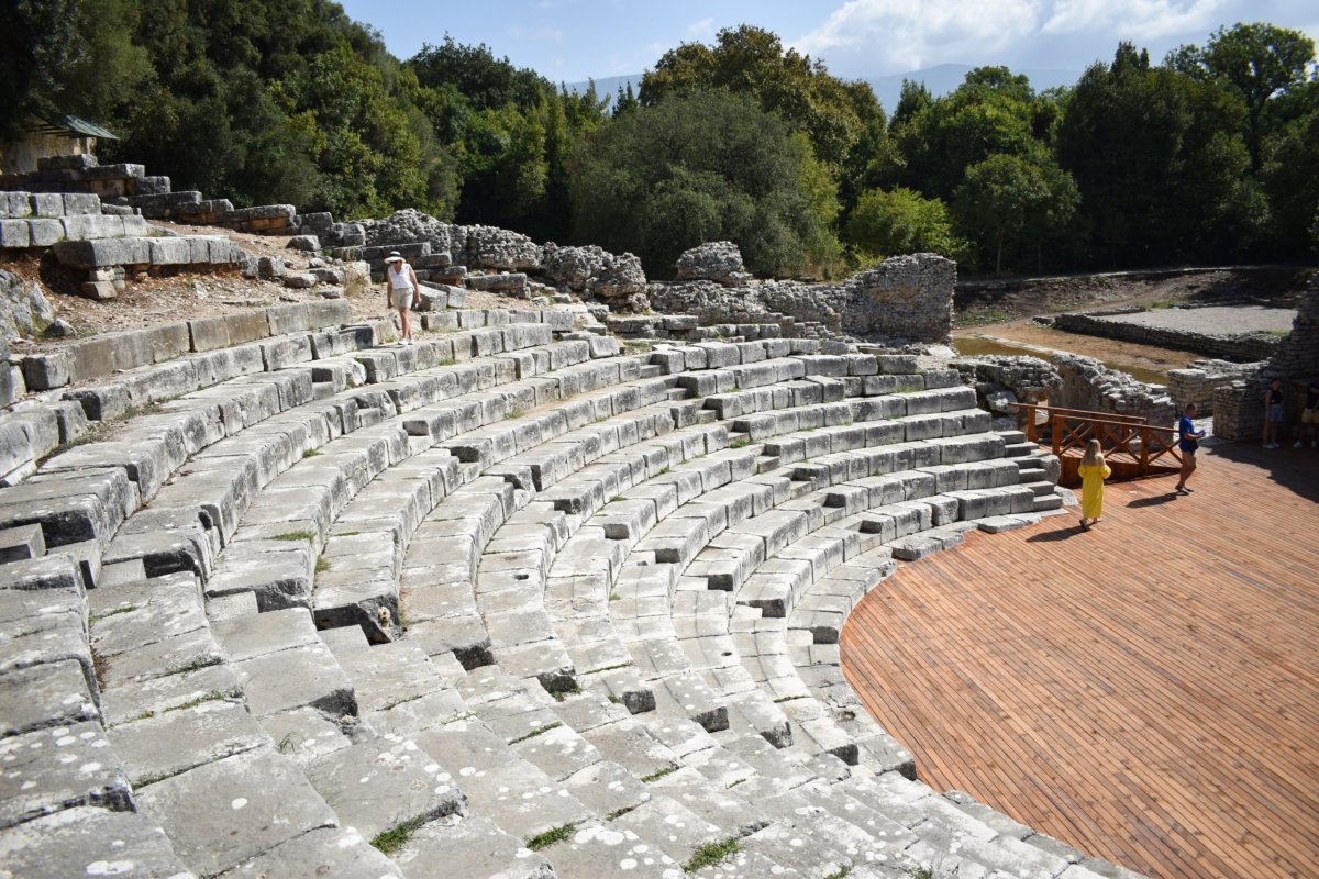 Jedeme na další památky. Butrint je prakticky jen přes kopec, ani ze Sarandy to není případně nijak daleko. Jak moc jsme na jihu poznáváme po kouknutí na mobil - operátor je většinu doby řecký a zároveň nám to mění i čas. V rámci areálu potom vidíme klasické zbytky řeckého města – divadlo, lázně, forum, obydlí, atd. Je tu k prohlédnutí i malé muzeum. Co stojí za zaznamenání je poměrně dost zachovalá budova Velké baziliky a baptisterium s krásnou mozaikou. To hlavní procházíme asi za 2,5 hodiny, část areálu je v kopci, ale to nás tentokrát nezastavuje. Na konci prohlídky se spouští pěkný lijavec, tak další místa v okolí rušíme a jedeme zpět.