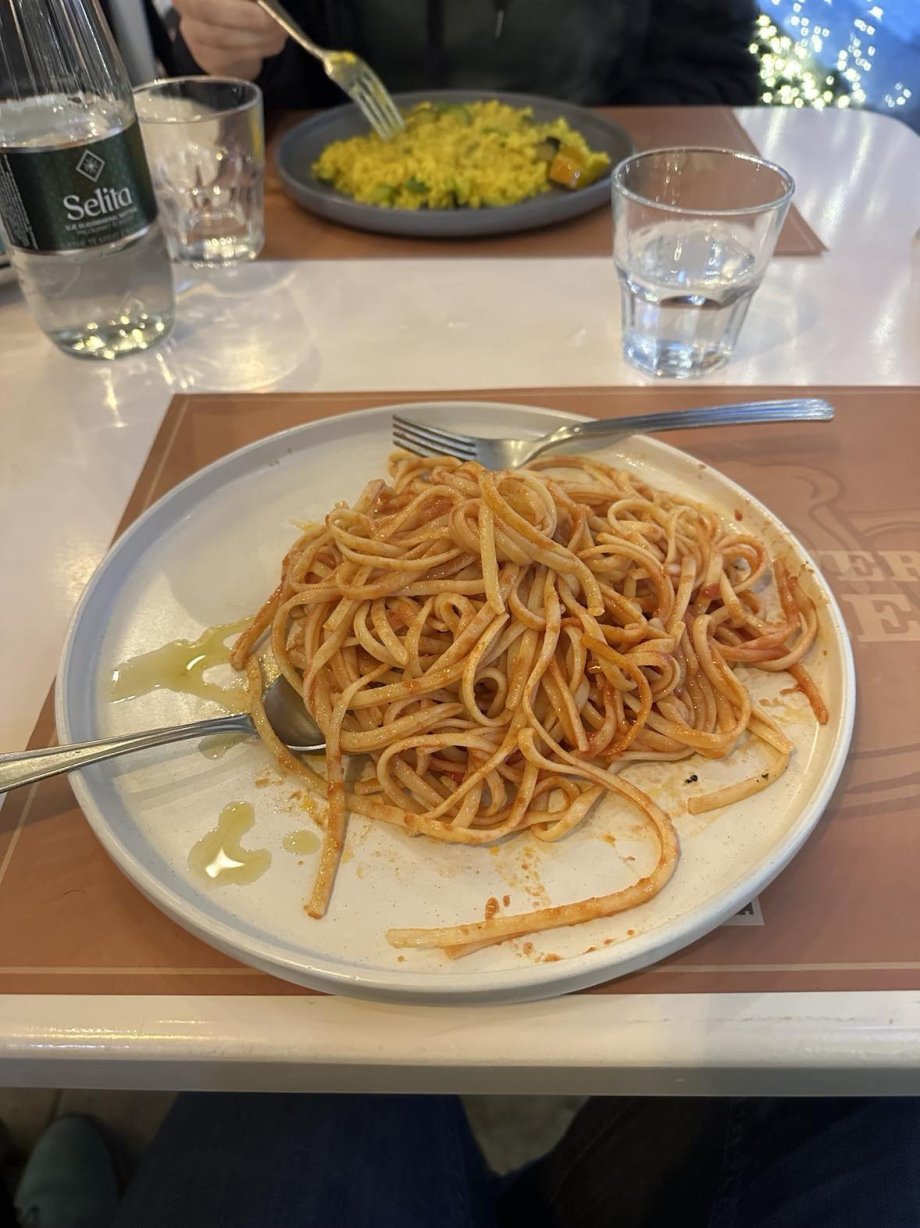 Máme hlad, a tak vybíráme restauraci. Vejdeme do první, která se nám zdá v pohodě. Bohužel tam mají tak nahuštěné židle, že se tam nedá pohodlně sedět. Sedneme si tedy na zakrytou terasu, kde mají hořáky. K pití si chceme objednat čas a dostaneme kázání, že nejsme v baru, že čaj zde nemají. Už tehdy jsme se asi měly sebrat a odejít. Volíme jednoduché jídlo, cenově je v pohodě, ale to, co nám přistálo na talíři? Prostě vám tam prdnou trochu špaget a nějakou omáčku, žádné aranžmá, těstoviny jsou spíš vlažné, žádný zázrak. Začneme si číst recenze a rveme si vlasy, kam jsme to vlastně vlezly. Bohužel to není vše. Číšnice nám přinese účet, kde si ručně dopíše 80% dýško v hodnotě jednoho jídla, teda 120 Kč. Takové dýško nedám skoro nikde. A tady ho v šoku zaplatíme a ani se nehádáme. Což mě zpětně mrzí, že jsme se měly ozvat, že s tím tedy nesouhlasíme. Za podprůměrné jídlo, ne příliš ochotnou obsluhu, a ne velký výběr jsme tedy zaplatily velmi nadprůměrné dýško. No, nechaly jsme se napálit. Aspoň jsme jim napsaly další peprnou recenzi. A snad si chytřejší turisté než my (ti co čtou recenze) vstup do této restaurace odpustí.
