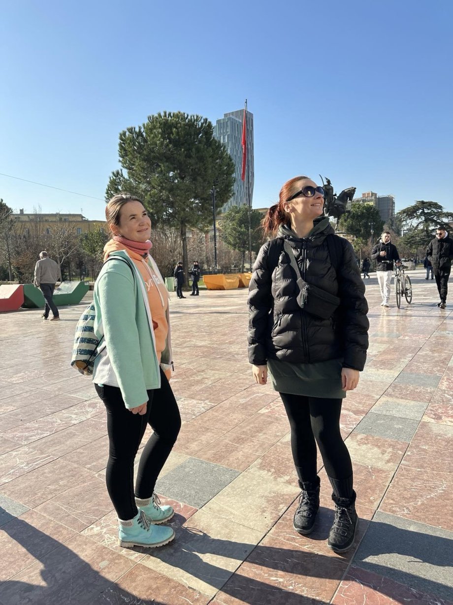 Prochází město, parky, velkou atrakcí je budova pyramidy. Dříve to byl památník, v současné době je předěláno na vzdělávací centrum. V noci krásně osvětleno. Údajně jedna stěna pyramidy byla zachována jako skluzavka, asi jsme i našly, ale neměly jsme odvahu to sjet dolů.
