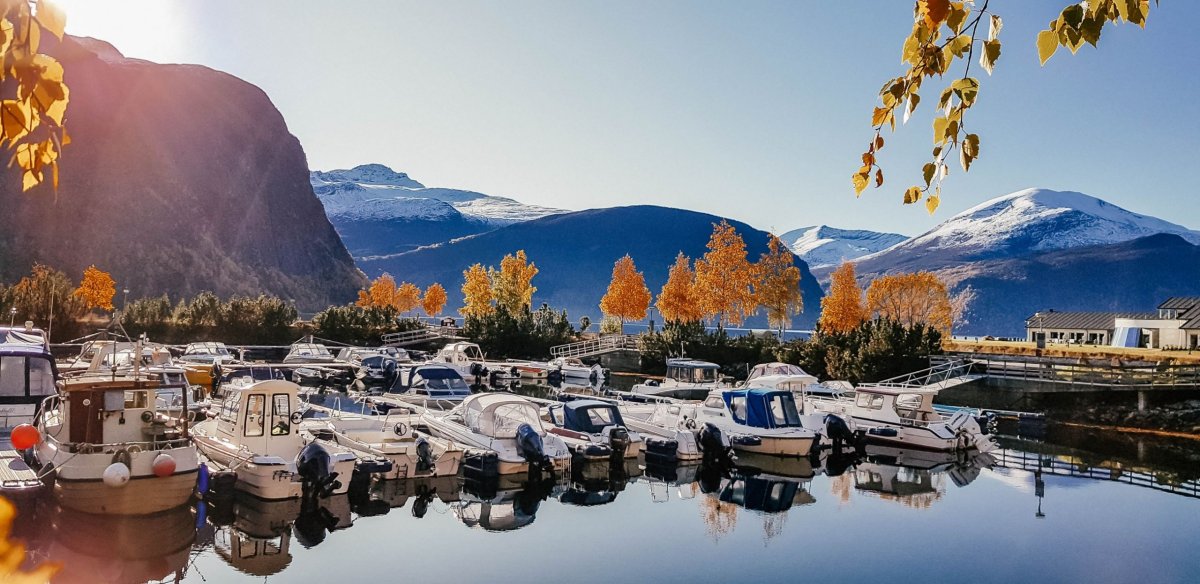 Pokud se nebudete vracet tou klikatou silnicí, kterou jste do Trollstigen přijeli, ale budete pokračovat dál do hor, pak se dostanete do údolí Valldallen, známého pro své jahodové plantáže. Jo, ano i v Norsku! Měla jsem z nich džem a byl fenomenální.Tady se zastavil čas. Nikdo tu nebyl, jen ticho a nádherné podzimní barvy. Všímejte si cedulek, které sem tam vysvětlují legendy, kterými je tahle oblast díky Vikingům opředená. Nezapomeňte se také podívat do té křišťálově průzračné vody, protože se to tu hemží hvězdicema (pokud jste někdo vzdělanější, tak gratuluji, ale já bych je tu nehledala)