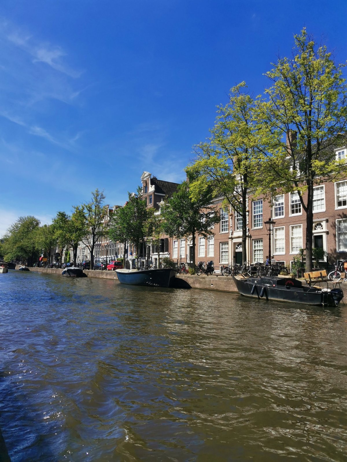 Stáčíme kroky v Rembrandtovu náměstí a kupujeme si hranolky, které jsou sice spíše belgickou záležitostí, ale stejně je tady mají na každém rohu. Coby oběd je to sice docela málo, ale aspoň něco. Míříme k Rijksmuseu, které sice nemáme v plánu navštívit, ale někde u něj bychom se rády nalodily. Vybavuju si totiž, že u něj je kotviště několika společností nabízejících plavby po zdejších kanálech. Prozkoumáme, jak to tady zhruba vypadá s cenami, a nakonec si vybereme jeden menší člun. Projížďka zabere zhruba hodinu a náš průvodce nám během ní vypráví o Amsterdamu, zmiňuje zajímavosti z historie a dává k dobru nejrůznější zábavné historky. Celá plavba se nese ve velmi uvolněné, přátelské atmosféře, kterou si užíváme. Sluníčko svítí (což není pro tohle město úplně typické), pofukuje mírný vánek a my prostě jenom tak jsme.