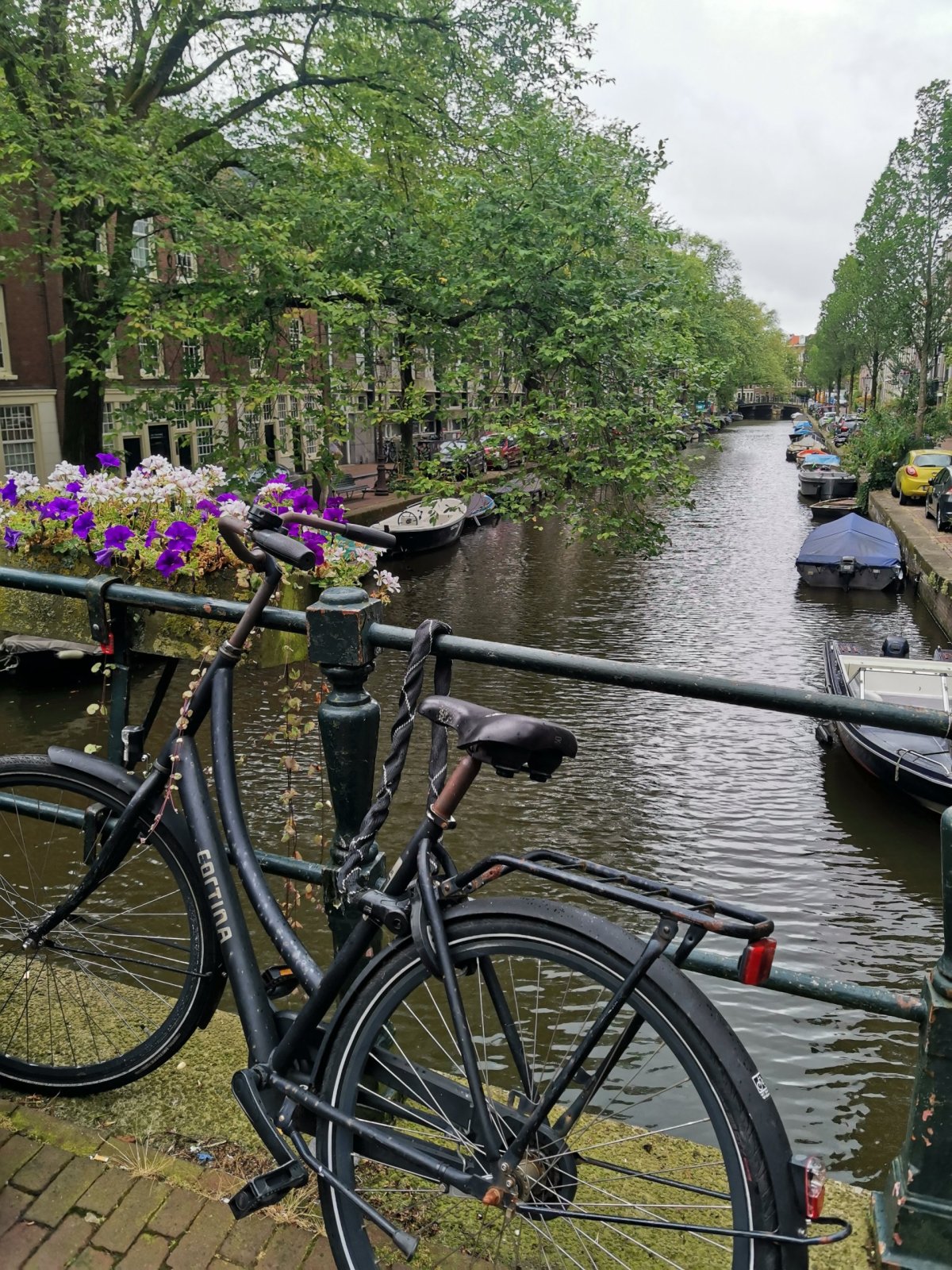 Najít v Amsterdamu dobrou kavárnu nedá zas tak moc práce. Podniky s kvalitní výběrovou kávou jsou na každém kroku. Ségra jeden z nich vyhlédne a za chvilku už si dopřáváme jablečný koláč a flat white, respektive machu a latte. Vzhledem k poměrně brzkému vstávání je potřeba kofein doplnit, i kdyby se mi nechtělo. Potom je čas vyrazit do ulic a konečně začít s průzkumem města. Check-in v hotelu je až po druhé hodině, navíc je to dost na okraji města, takže se nevyplatí jezdit tam a zase zpátky. Naštěstí cestujeme nalehko, tudíž zvládneme batoh ten jeden den nosit vcelku bez problémů.