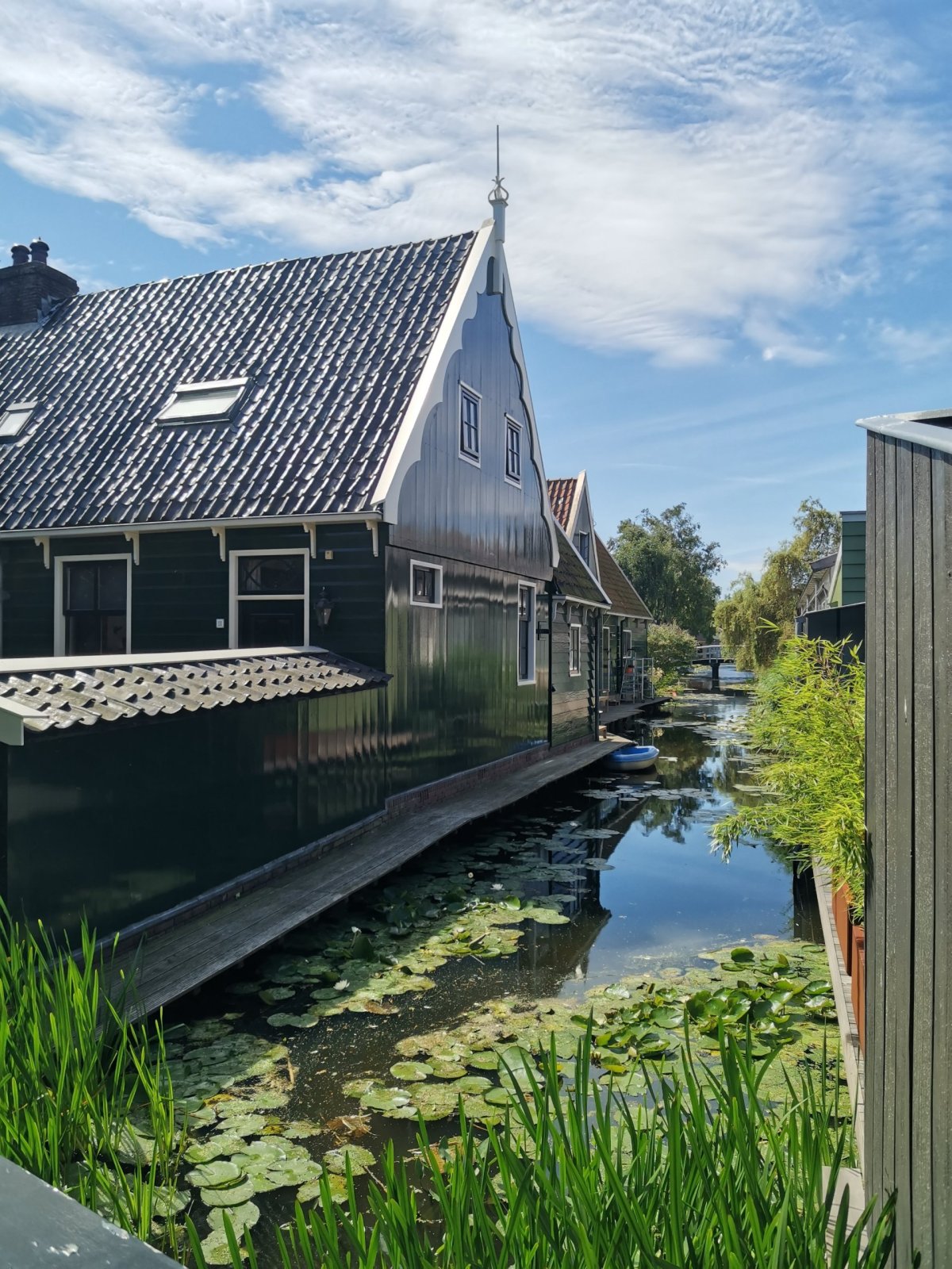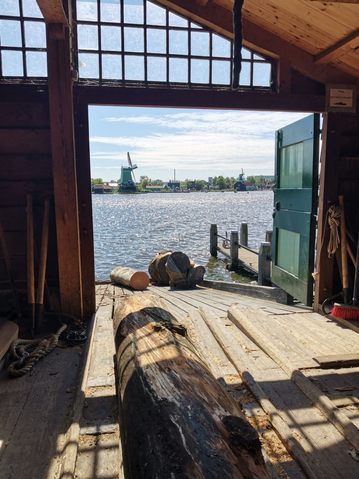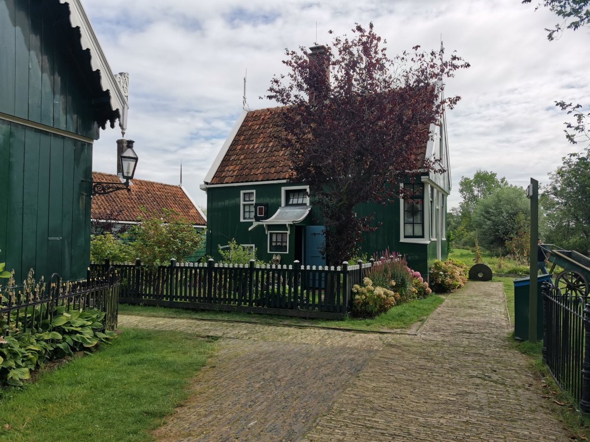 Na sobotu jsme si naplánovaly další výlet mimo Amsterdam, tentokrát vesničku Zaanse Schans, která od roku 1961 funguje jako skanzen a přibližuje život v této oblasti v době jejího největšího hospodářského rozkvětu. Zdejší budovy mají podobu zhruba ze 17. a 18. století, nicméně většina z nich není původní, a dokonce ani z této oblasti. Postupně sem začaly být naváženy po roce 1945, když se rozhodlo, že právě tady by se mohl otevřít skanzen.