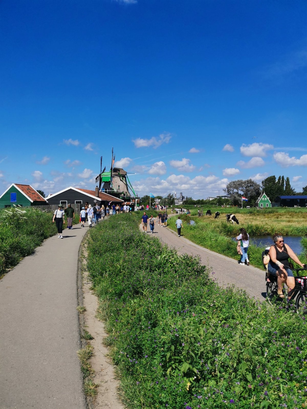 Z Amsterdamu se sem vlakem dostanete za zhruba čtyřicet minut, trochu záleží i na tom, z jakého směru pojedete. My máme štěstí v tom, že vlak zastavuje i na nádraží kousek od našeho hotelu, tudíž nemusíme do centra a nastoupíme tady. Jelikož je sobota a navíc pěkné počasí, záhy se však ukazuje, že tentýž nápad jako my měla i hromada dalších lidí. Z nádraží ke skanzenu nás jde obrovská horda a nezbývá než doufat, že přímo na místě se dav přece jenom trochu rozptýlí.
