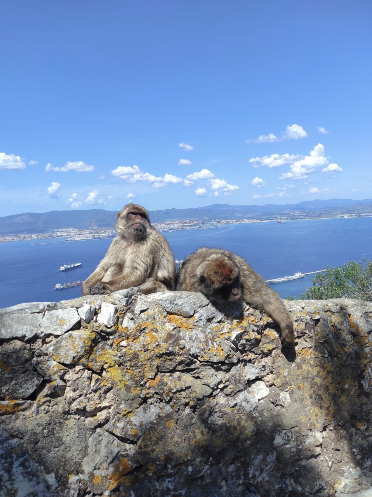 2. den jsme strávili na Gibraltaru - kousek Anglie ve Španělsku, platí se zde librama, mají zde koše a telefonní budky jako v Anglii, ale jezdí se zde vpravo a mají tu jako jediný v Evropě opice ve volné přírodě. Vyrazili jsme brzo ráno po cestě si koupili sváču v lidlu (ten na cestách milujeme) a vyrazili na cca hodinovou cestu - jeli jsme po dálnici a zaplatili na mýtné bráně necelý 3 eura. Zaparkovali jsme na Španělské straně a přes pasovou kontrolu přešli po svých, počkali na semaforu než přeletí letadlo, vyfotili se u červené budky, nasáli anglickou atmosféru, dali si sváču v botanické zahradě a za cca 33 liber vyjeli lanovkou na Gibraltar (jo je to 1000kč, ale v ceně byli ještě další atrakce a ten kopec je faakt velkej :D) u východu z lanovky nás přivítali hned opičky, strávili jsme tam nejvíce času, protože jsme mysleli, že už žádné neuvidíme - pak jsme jich viděli ještě určitě tak 30. V ceně byla ještě skleněná stezka s vyhlídkou na moře a Maroko a jeskyně. Na Gibraltaru jsme strávili celý den, pak se jen jeli provětrat na pláž a zpět na ubytko.