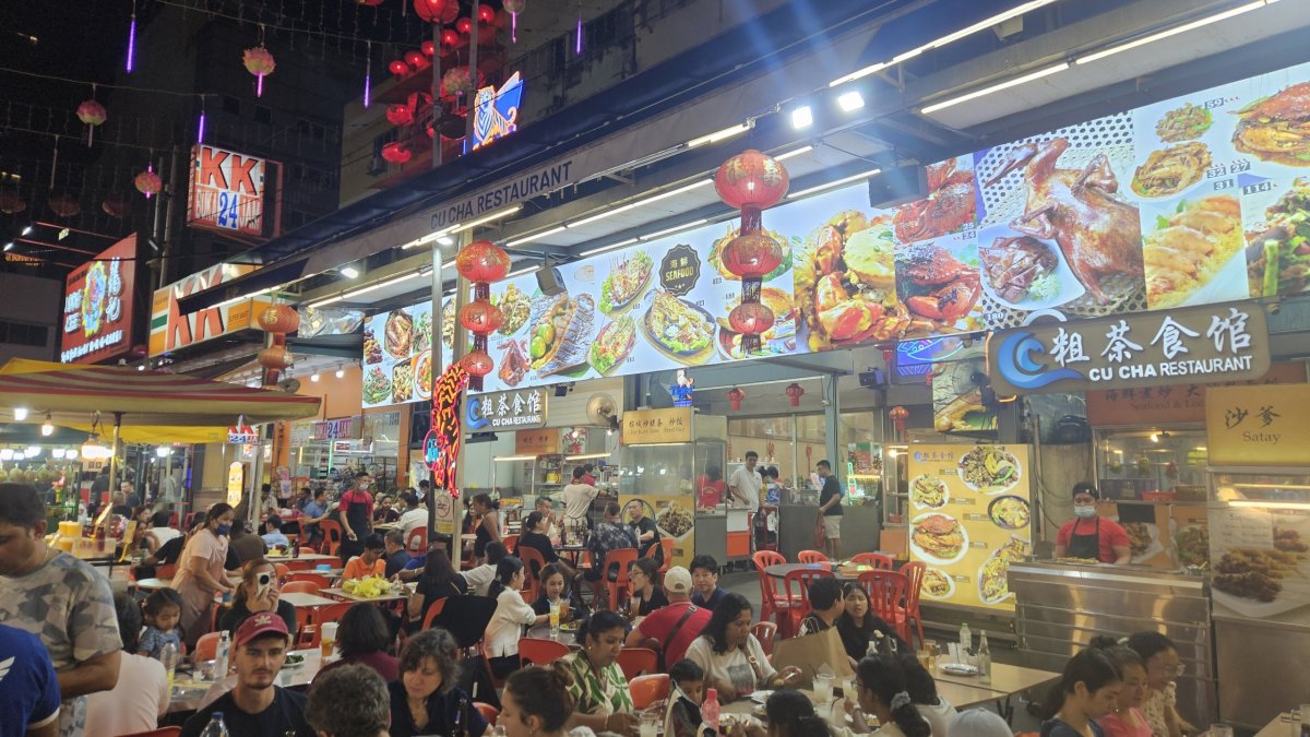 Kousek od této rušné ulice nalézáme přeci jen klidnější restauraci, kde si objednáváme nějaké místní jídlo. Bohužel, dostáváme na místní poměry jídlo nevalné chuti, malou porci bez přílohy, takže cena 95 MYR (475 Kč) je v tomto případě neadekvátní.