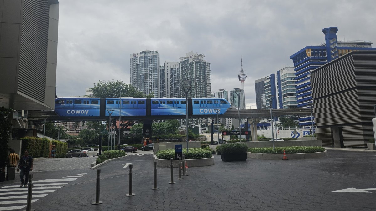 V podvečer tak vystupujeme na hlavním nádraží v Kuala Lumpur, které je také středobodem místní kolejové hromadné dopravy. My dle tabulek, které nám občas zmizí a které zase někde najdeme, míříme k lince nadzemního monorailu, kterým se chceme dopravit k ubytování. Místní zvláštností je to, že na moderním jízdenkovém automatu si zvolíme trasu i cílovou stanici, normálně zaplatíme (velmi levné) jízdné kartou (4 stanice stály 2,80 MYR / 14 Kč), ale jízdenku zde tvoří kulatý žeton. Ten vás na nástupiště pustí přiložením ke čtečce, ven z nástupiště na cílové stanici tím, že jej vhodíte do otvoru automatické brány.