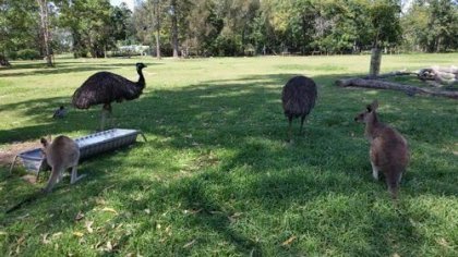 Mikrobusem pak pokračujeme v naší 10ti členné sestavě do nitra nejstaršího deštného pralesa na světě. V tomto národním parku podnikáme asi 30ti minutovou minitour a snažíme se zahlédnout Kasuáry. Smůla č. 2. Oba dva predátory nám alespoň částečně nahrazují zde žijící dragoni - ne nepodobní leguánům a nedotčená flóra tropického pralesa. Celkem vidíme postupně 4 kousky ještěrů a hodně druhů stromů a rostlin, které nejsou nikde jinde na světě. Popojíždíme klikatou silnicí k dřevěnému srubu uprostřed pralesa, kde je pro nás připraveno občerstvení a steak se zeleninou. Zatímco průvodce steaky opéká, my míříme do minizoo. Majitel tu chová pár klokanů a papouchů. Jsou krotcí a kamarádští.