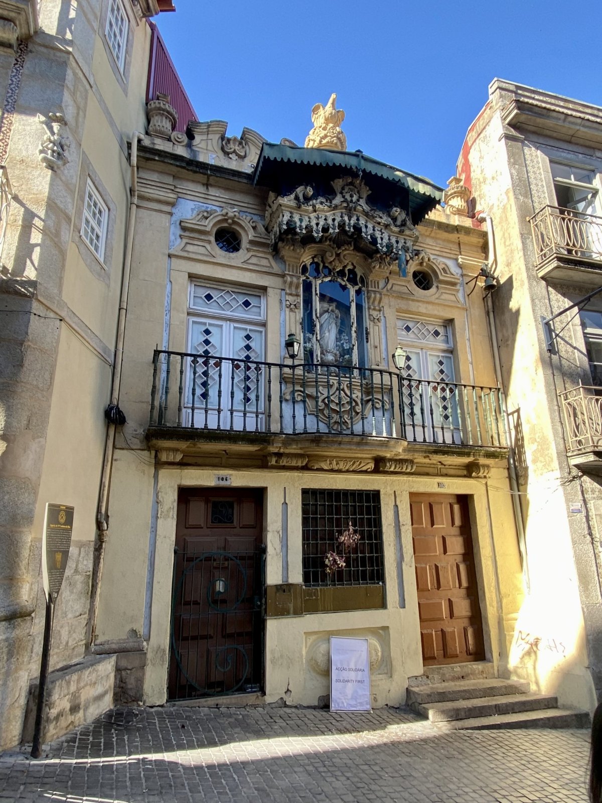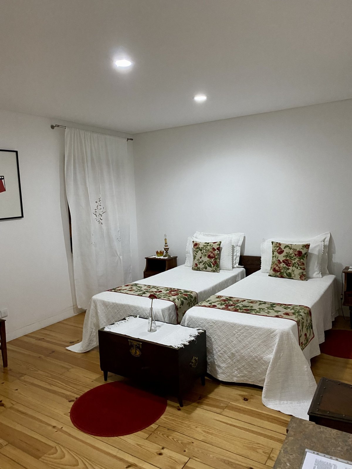 CASA 45 je jeden z mnoha pitoreskních domků v Rua do Pinheiro. Ulice je poměrně populární a většina domů slouží jako BnB, tipuju to tak na 4 – 6 pokojů na barák. V lobby nás uvítala karafa s portským a byla tam k dispozici hostům po celou dobu. Za 4 noci s velmi dobrou snídaní jsme zaplatili 272 eur. Pokoj byl menší, ale útulný, s klimatizací, koupelnou a oddělenými postelemi. Jediné, co mě zklamalo, že jsme měli okna do ulice a ne do zahrady, jak inzerovali. To neměl ale ani jeden pokoj, jen společná terasa. V noci je tahle ulice poněkud živější, protože jí procházejí lehce přiopilí místní i nemístní tak do 5 do rána. Prostě bez špuntů je skoro nemožný usnout (pokud teda není člověk na plech :-D).