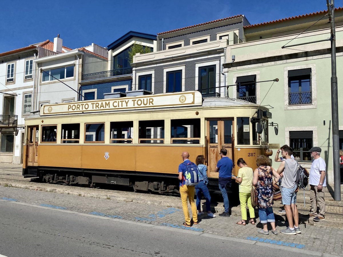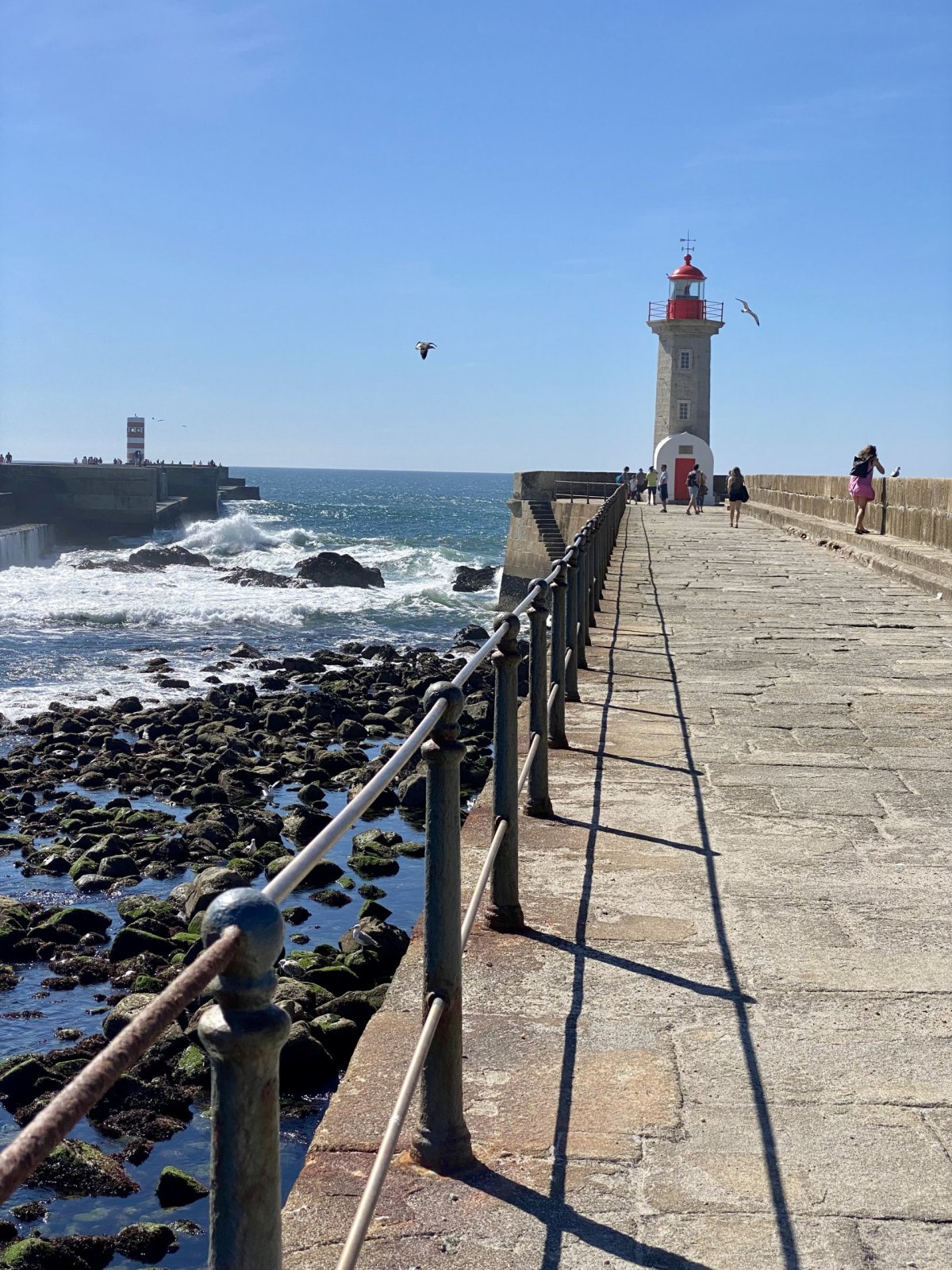 Ráno jsme si dali lehkou, ale výživnou snídani, vzali si s sebou nějaké ovoce, lahev s pitím a vyrazili do města. První zastavení bylo jen pár desítek metrů od ubytování, na náměstí Aliados, kde je místní radnice. A taky velký nápis PORTO, před kterým se všichni fotí. Pod náměstím je zastávka busu 502, který nás odvezl k moři (zastávka Brito Capelo). Šli jsme na Matosinhos Praia, pak pěšky k majáku, sice trochu foukalo, ale jinak na krátký rukáv. V moři se koupalo docela dost lidí a ještě víc jich couralo po promenádě, možná proto, že byla neděle. Prohlídli jsme si pevnost Castelo do Queijo a dali si skvělý pomerančový fresh a zmrzlinu v Bar Praia do Aquários s výhledem na moře. Pak jsme po nábřeží popojížděli různými autobusy a na Passegio Alegre vyzkoušeli místní atrakci pro turisty. „Historickou“ tramvaj č. 1 si musíte zaplatit zvlášť a za těch 5 eur to fakt nestojí. Jedete krátce a moc toho nevidíte (to tramvaj 28 v Lisabonu je stokrát lepší).