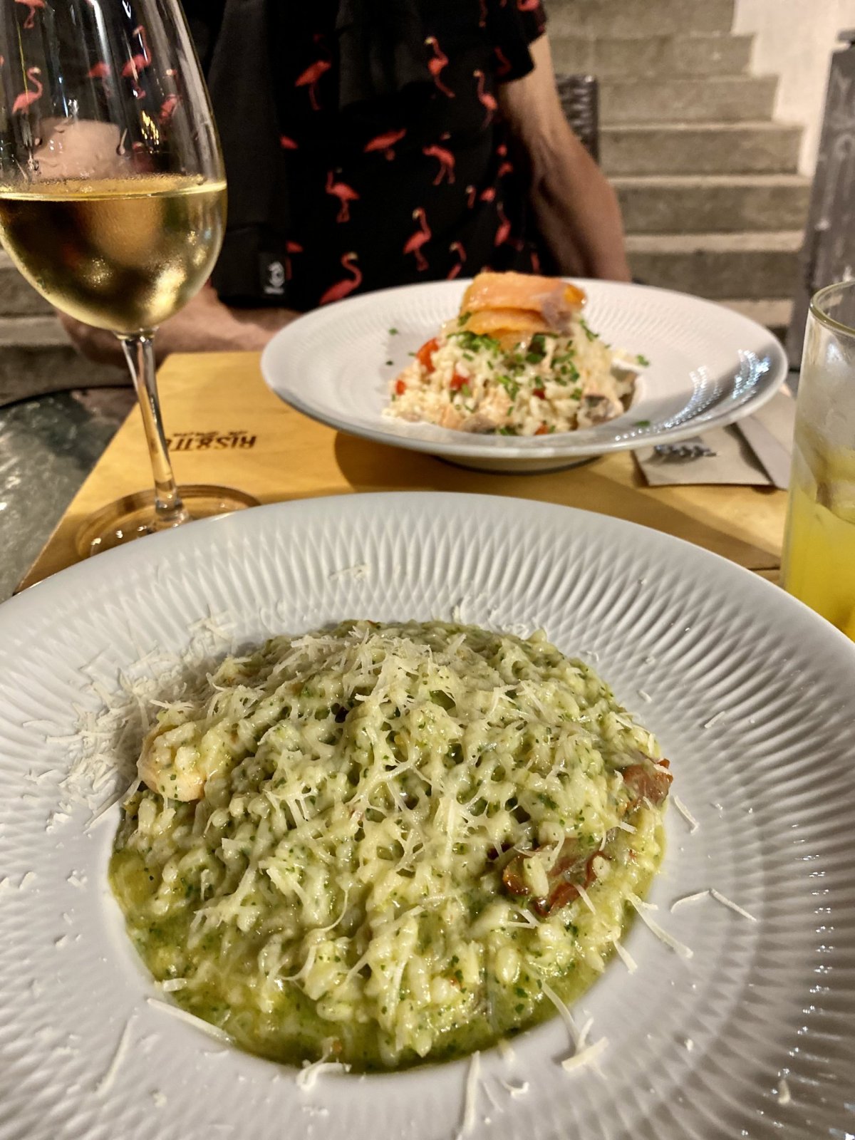 Kodrcali jsme se podél pobřeží na stanici Infante a odtud pokračovali k mostu Ludvíka I. a na druhou stranu řeky do Jardin do Morro, prošli si okolí mostu a počkali si na západ slunce na vyhlídce Miradouro da Serra do Pilar (před kostelem). Je to tam kouzelný, muzikanti hrajou, tramvaj na mostě cinká… kýč jak bič.. Je to tam lepší než v parku pod vyhlídkou, kde je dost lidí, sedí u piva a čekají, až to žbluňkne. Po sluneční exhibici jsme si přešli Most Ludvíka I, popojeli busem k našemu ubytování a dali si úžasnou večeři v bistru Ris8tto da Baixa. Vyzkoušeli jsme rizoto s krevetami a rizoto s hříbky a obě byla výtečná. Dokonce i červené víno za 3 eura mělo dobrou chuť Doslova jsme se doplazili do našeho domečku a padli do postelí. Ono se to nezdá, ale Porto je všude do kopce a z kopce a zase do kopce a všechny busy, které jezdily do naší oblasti, končili pod kopcem, takže jsem se docela nachodili.