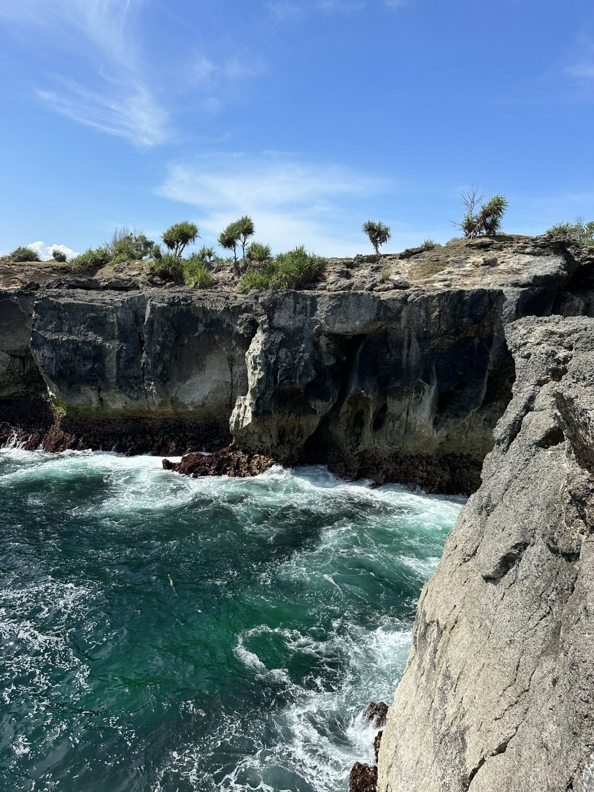 - Diamond Beach – Ďalšie ikonické miesto. Na tejto pláži sa nedá kúpať kvôli veľkým vlnám a skalám vo vode. Cesta na samotnú pláž je po schodoch, posledný úsek je trošku náročnejší. Cena za vstup je 35000 IDR/osoba.