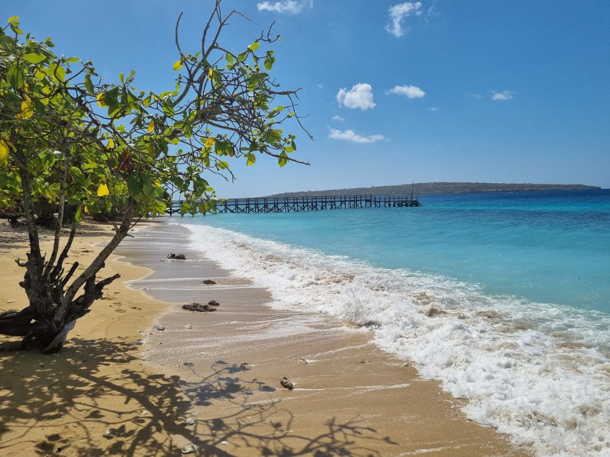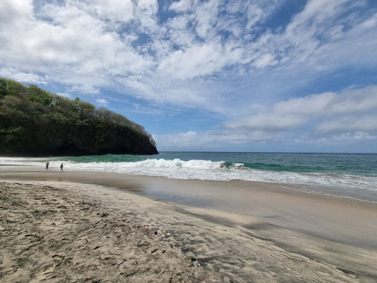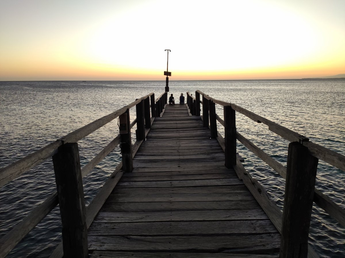 Ráno jsme si přivstali s tím, že půjdeme pozorovat východ slunce na molo a pak vypustíme na chvilku drona. Jak se brzy stmívá, zdá se noc nekonečná. I když už jsem si pomalu zvykala na zvuky příboje, pořád jsem nespala úplně tvrdě a když začalo svítat, už jsem tahala kluky z postele. Na pláži i na molu jsme byli zase úplně sami, celkově jsme si připadali, jako milionáři, kteří mají svůj soukromý ostrov. Z mola jsme pozorovali a fotili pomalu se vynořující slunce, ty obzory byly zase až kýčovité. Jakmile manžel vzlétl s dronem, všimla jsem si něčeho ve vodě. OPICE! Normálně si šla ráno zaplavat při východu slunce do moře. Četla jsem, že zde se makakové chovají dost neobvykle, že se prý koupou v moři, ale nevěřila jsem, dokud jsem na vlastní oči neviděla. Prostě si jen tak plavala podél pobřeží, pak vylezla a zmizela v lesíku. Další zážitek, který člověk jen tak nezapomene. Kolikátý už? 😊