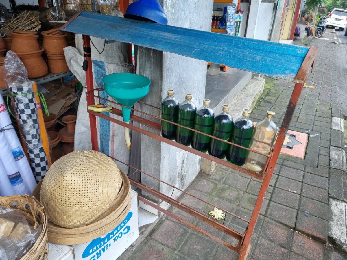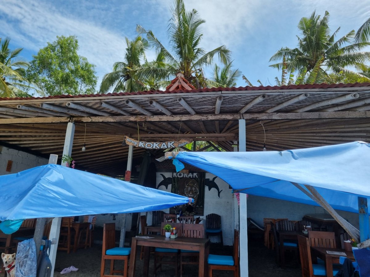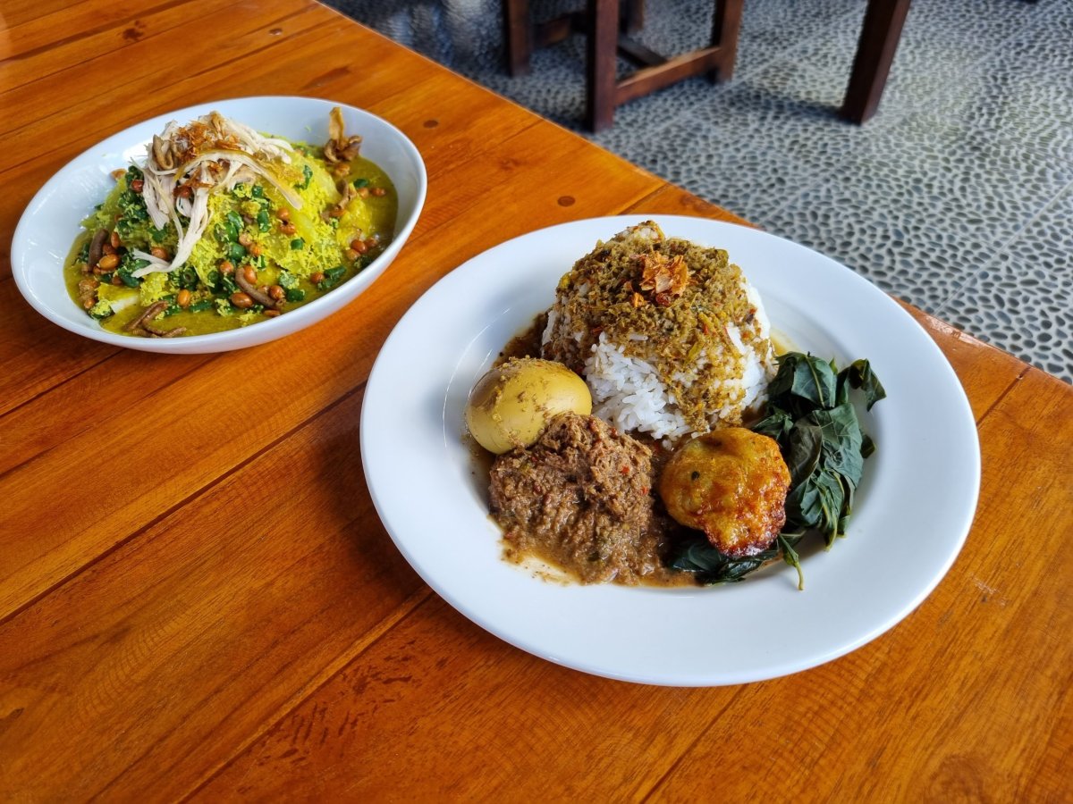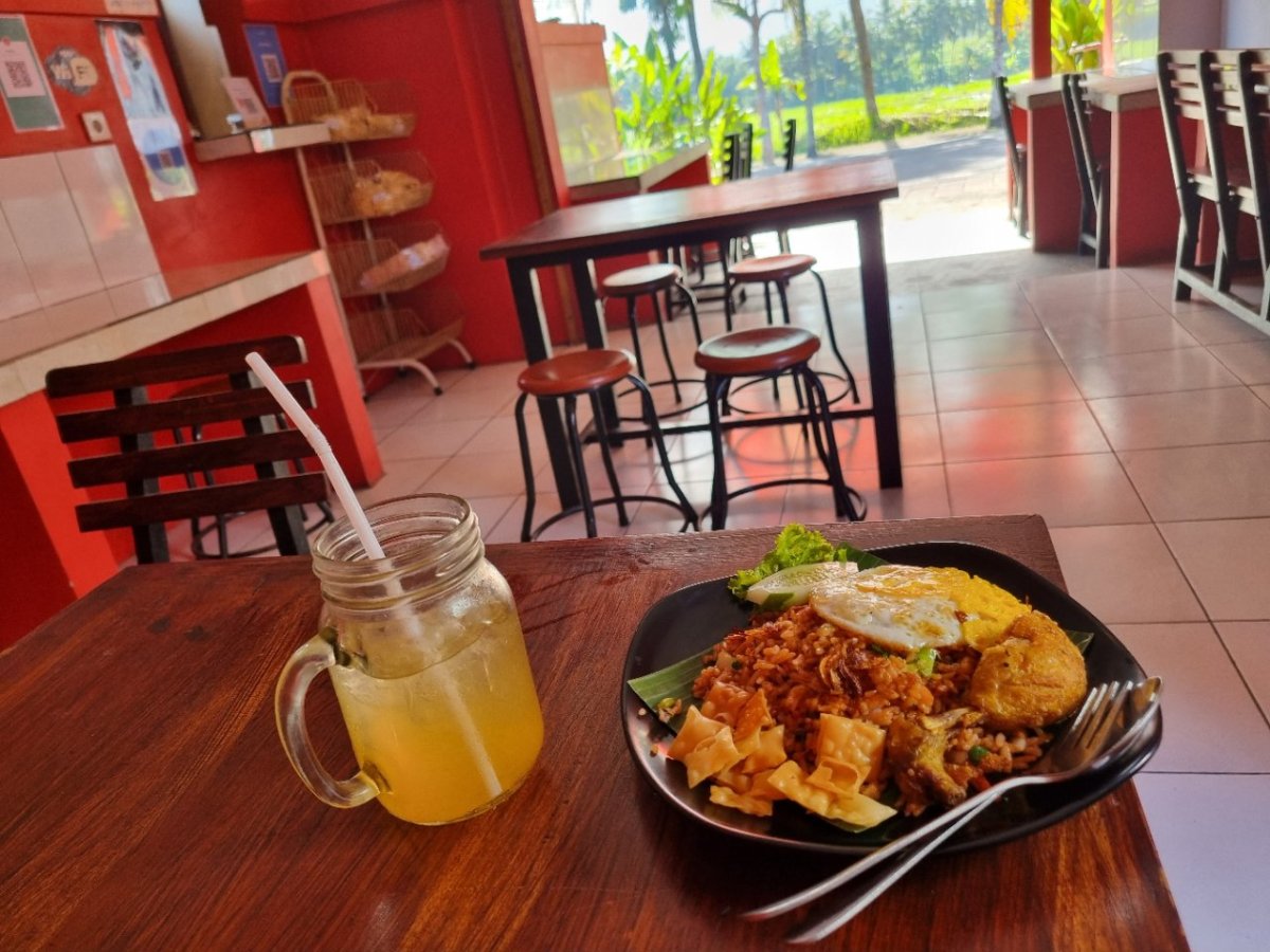 Po snídani a svlažení v bazénu jsme sbalili věci a s naším řidičem Putu putovali přes další části Bali až do nejzápadnější oblasti ostrova. Čekala nás tentokrát bez zastávek, dvou a půl hodinová cesta do přístavu, kde jsme měli domluvený hotelový transfer lodí do našeho posledního hotelu. Čím víc jsme směřovali k západu, tím víc stoupala teplota a bylo víc a víc sucho. Viděli jsme vyschlá koryta řek, zelené hory vystřídaly holé rozpálené skály. Zelené lesy ustoupily suchým keřům. Jako by člověk za ty dvě hodiny odjel do úplně jiné země. Místo budhistických chrámů se všude objevovaly mešity. Když jsme se přiblížili k přístavu, měli jsme ještě půlhodinky čas. Poprosili jsme Putua, jestli by nám nezastavil na rychlý oběd. Tato restaurace uprostřed rozpálených liduprázdných ulic byla naprosto skvělá. Byli jsme jediní hosté a jídlo měli hotové za 10 minut. Bylo ho spousta, bylo skvěle ochucené. Jediné mínus byly nápoje. Zde jsme se poprvé setkali s tím, že ovocné džusy byly z koncentrátu – vysvětlovali jsme si to tím, jak je tu sucho. Ovoce by si sem museli nechat dovážet z hor – neroste tu tak, jak je to v jiných oblastech Bali.