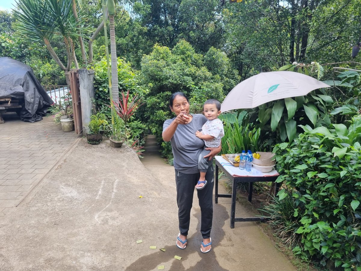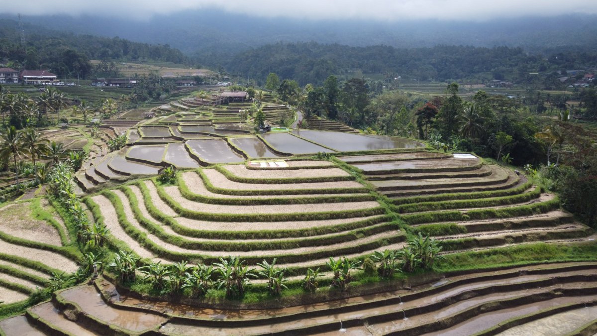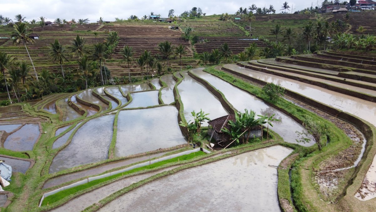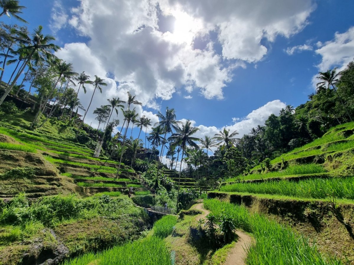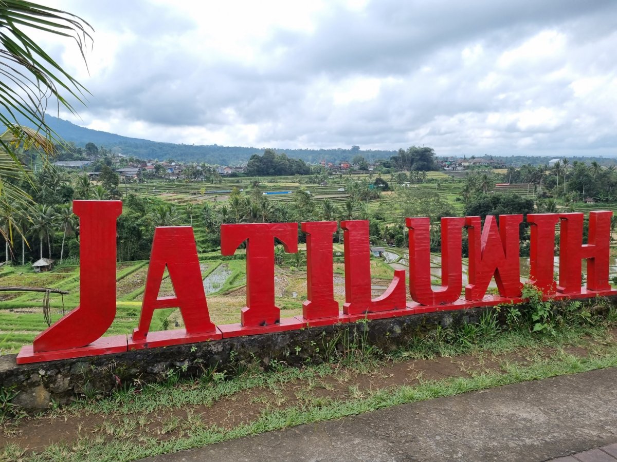 Ráno dne č. 10 jsme po snídani sbalili věci. Řidič nám nedočkavě psal, že je už na parkovišti a čeká na nás – ale to jsme ještě vůbec netušili… 😊Plán byl přemístit se z ubytování A do ubytování B a po cestě udělat dvě až tři zastávky na pamětihodnosti po cestě – ALE náš řidič to jaksi nedokázal pochopit. Prý mu jeho šéf řekl, že nás má jen přemístit z ubytování A do ubytování B. Jeli jsme asi 40 minut do bodu, kde jsme měli odbočovat z hlavní silnice k rýžovým terasám. Jelikož jsme na původní domluvě trvali, ale řidič nechtěl ustoupit, zastavili jsme a asi hodinu jsme čekali na druhého řidiče, který pro nás měl přijet z Munduku a tu naší „okružní jízdu“ si převzít. Celkově tu platí, že když mají balijci něco složitějšího vyřešit, hrozně to zkomplikují a čas běží a běží…nakonec jsme se ale náhradního řidiče přeci jen dočkali a vyrazili na rýžové terasy Jatiluwih. A byli jsme okouzleni! V podstatě nejde jen o několik teras, ale o celou oblast na svahu hory. Nahoře v kopcích se držely tmavé mraky, nad hlavami nám svítilo slunce a v kombinaci s těmi mraky vytvářelo kouzelný opar a dole v údolí bylo vidět až k moři. Všude kolem nás políčka, zemědělci, neuvěřitelné výhledy! Tisíckrát krásnější než terasy Tegallang u Ubudu, mnohem méně lidí, mnohem více prostoru. Jsou tu značené stezky podle toho, kolik máte času. Vybrali jsme si cca čtyřkilometrovou. Vypustili drona, za kterého si hned přiběhla paní vybrat poplatek a užívali jsme si tu nádheru. U výstupu zpět na parkoviště už nás vyhlížel náš nový řidič Putu a pokračovalo se přes Balijský venkov dál v cestě.