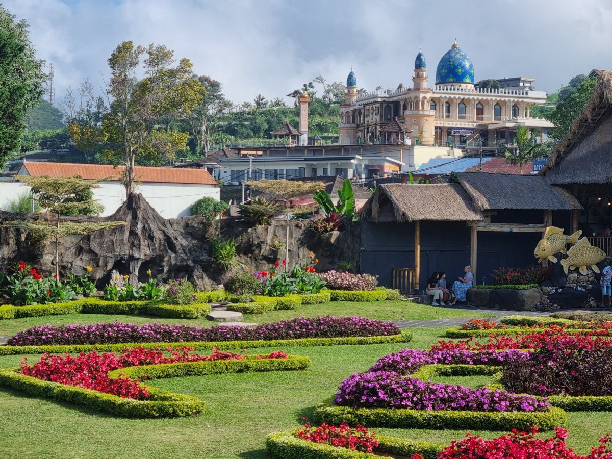 Další zastávkou byl chrám Beratan v horách u stejnojmenného jezera. Jakmile jsme opustili rýžové terasy, vjeli jsme do zlověstných mraků, které hrozily deštěm. Mile nás ale překvapilo, že jsme jen mraky projeli, a jakmile jsme se objevili ve vyšší nadmořské výšce, opět se změnilo klima. Najednou byl horský svěží vzduch a velmi ostré sluníčko. Tento chrámový komplex je místo plné kontrastů: na jedné straně nádherný chrám uprostřed jezera na ostrůvku a v pozadí vysoké hory a na druhé straně pokusy o popularizaci místa, upravené zahrady a takový menší cirkus - zábavní park. Kdyby balijci nechali chrám jen samotný, bez okolních pokusů o „zkulturnění“ okolí, udělali by lépe. Další cesta k našemu dnešnímu cíli, horskému městečku Munduk, vedla děravou asfaltkou okolo dalších dvou horských jezer (ledovcového původu). Zde jsme zastavili, abychom se pokochali vyhlídkou Twin Lake s oběma jezery pod sebou. Bylo vidět, že v této oblasti již ubývá turistů a přibývá kromě všudypřítomných budhistických chrámů i mešit. Na severozápadě je velmi rozšířený Islám (jako ve většině Indonésie). Bylo zajímavé (kromě přenádherné přírody) sledovat, jak se mění složení obyvatel, především jejich oblečení. Jak spolu v míru žijí spolu dvě odlišná náboženství, a přitom působí tak tolerantně. Také se měnily plodiny, které se zde pěstují. Z rýžových terásek se rázem staly záhony se zeleninou a květinami. Putu nám vysvětlil, že tyto květiny se používají při náboženských rituálech. Pak nás upozornil na to, že se tu ve velkém pěstuje koření, především hřebíček. Všude u cest ho místní sušili na plachtách natažených na slunci. Vzduch je tu na rozdíl od nížin suchý (poprvé za celou dovolenou nám tu na terase na hotelu uschly plavky a boty do vody).