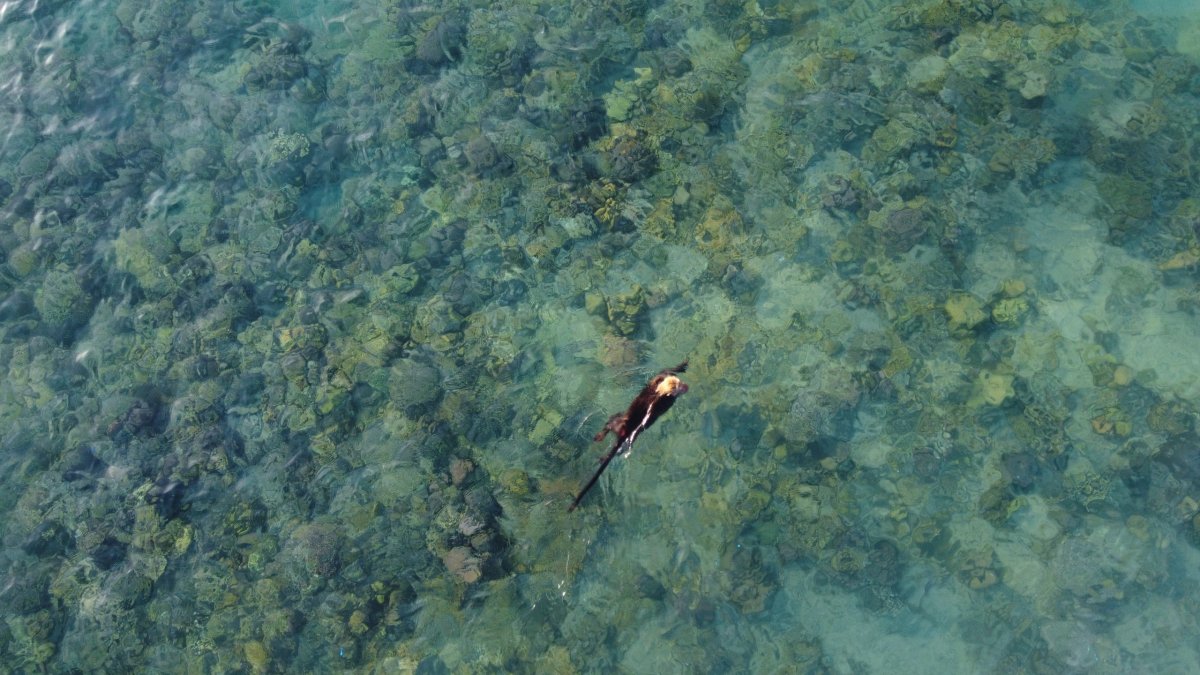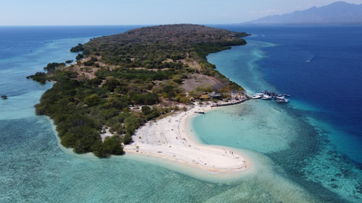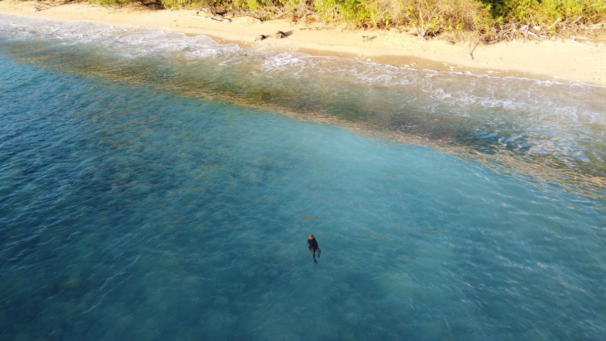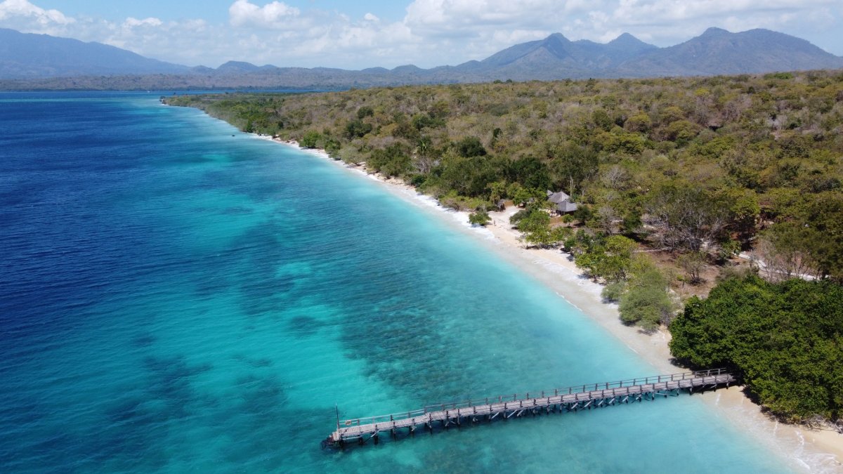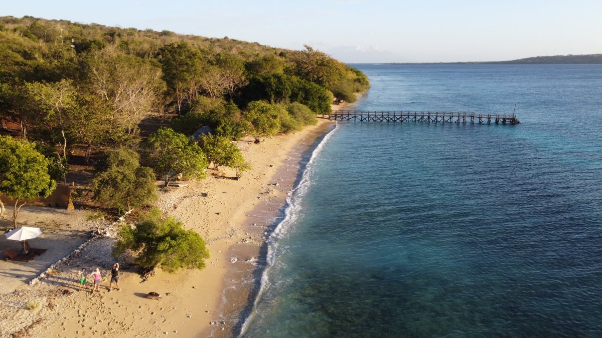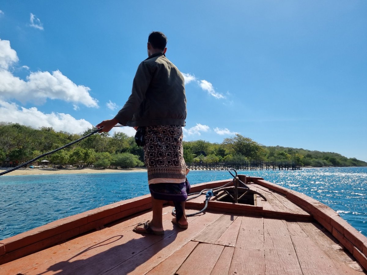 Po šnorchlování jsme se přes loď dostali na ostrov, kde nám průvodci udělali kafe/čaj a každému dali krabičku s ovocem na doplnění cukrů. My tři jsme se po návštěvě WC vydali na písečný výběžek (na Maledivách se jim říkalo „sandbank“ a u nás doma to zdomácnělo) a vypustili drona. Z ostrova bylo krásně vidět až na Jávu a na její nejbližší sopku Ijen. Při návratu na loď jsme potkali zdejší obyvatele – jelena a laň, jak se pasou v blízkém porostu. Ani tito se lidí nebáli, jen si drželi asi dvoumetrový odstup. Po nalodění jsme kousek popojeli a opět zakotvili u hrany útesu. Sledovali jsme podmořský rej, kluci se zkoušeli potápět se šnorchlem a já bojovala se stávkujícím Go-pro. Při cestě zpět na „náš“ poloostrov se k naší lodi přidalo pár delfínů, ale než jsme jejich radostné výskoky stihli vyfotit, byli pryč.