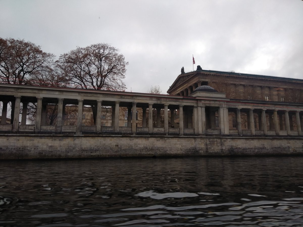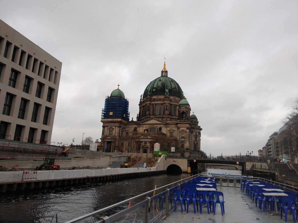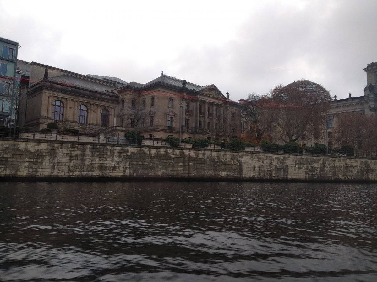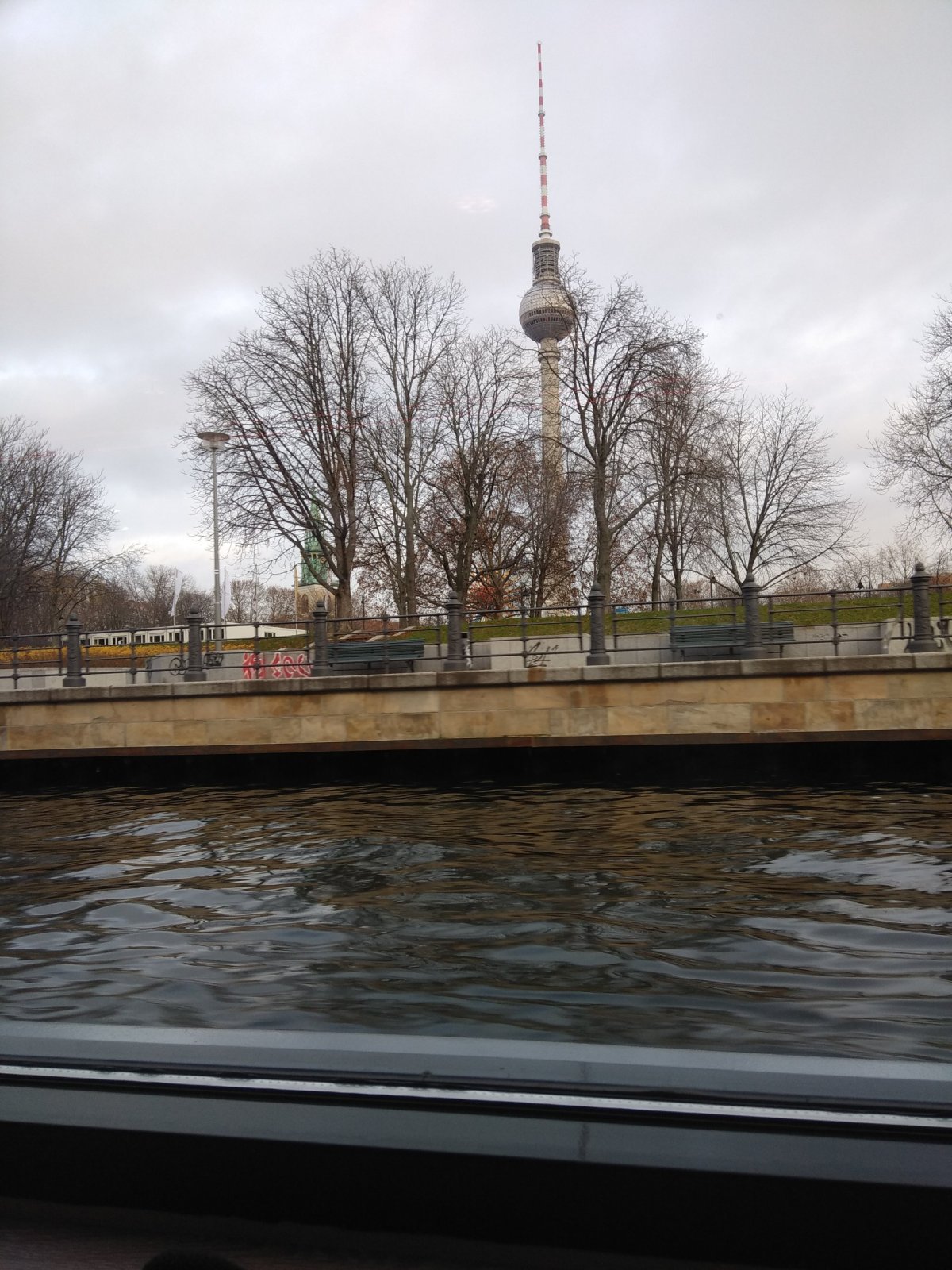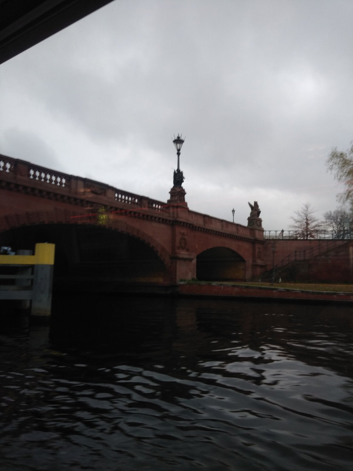 Zahřátí vínem jedeme s-bánhem k přístavišti výletních lodí na prohlídkovou trasu po Sprévě. Je tu poloprázdno, teplo a podávají zde jídlo i nápoje. Podobně jako všude, kde lze vidět město z řeky, je to nová perspektiva a zcela jiné pohledy. Horní paluba je nekrytá a hrozně tam fouká. Je to vždycky jen na chvíli a pár fotek a honem zase do kabiny do tepla.