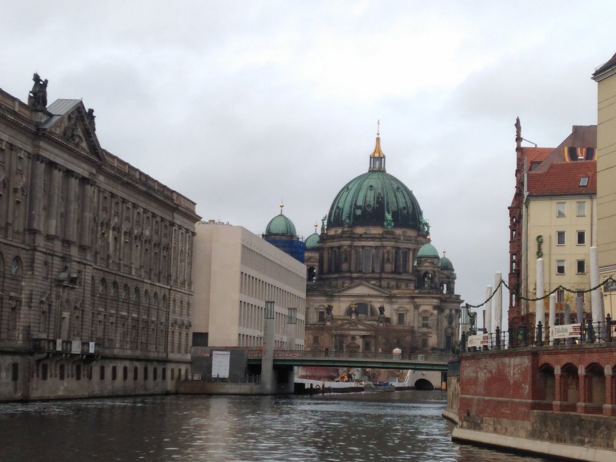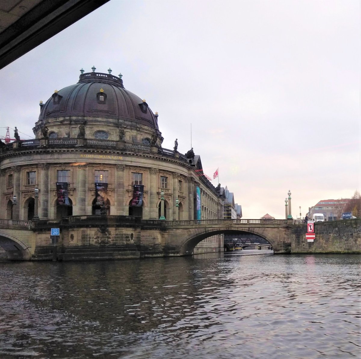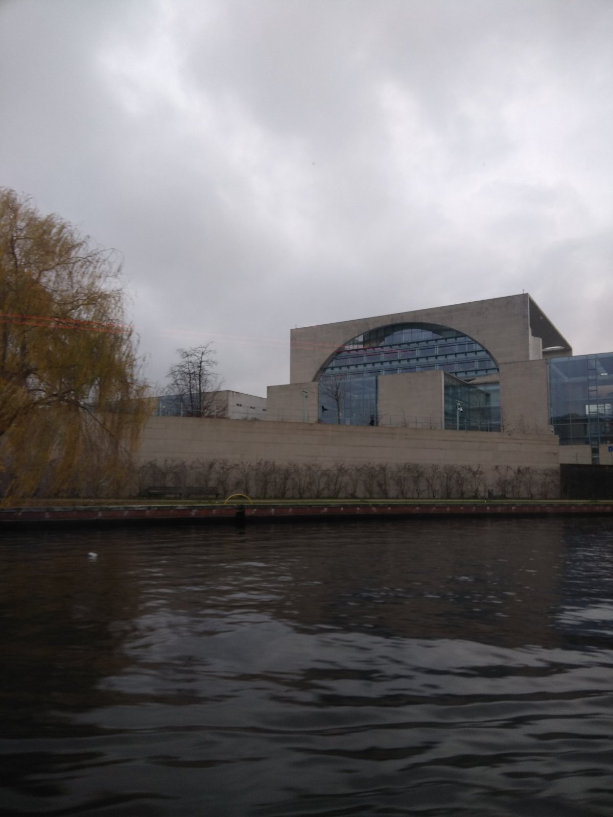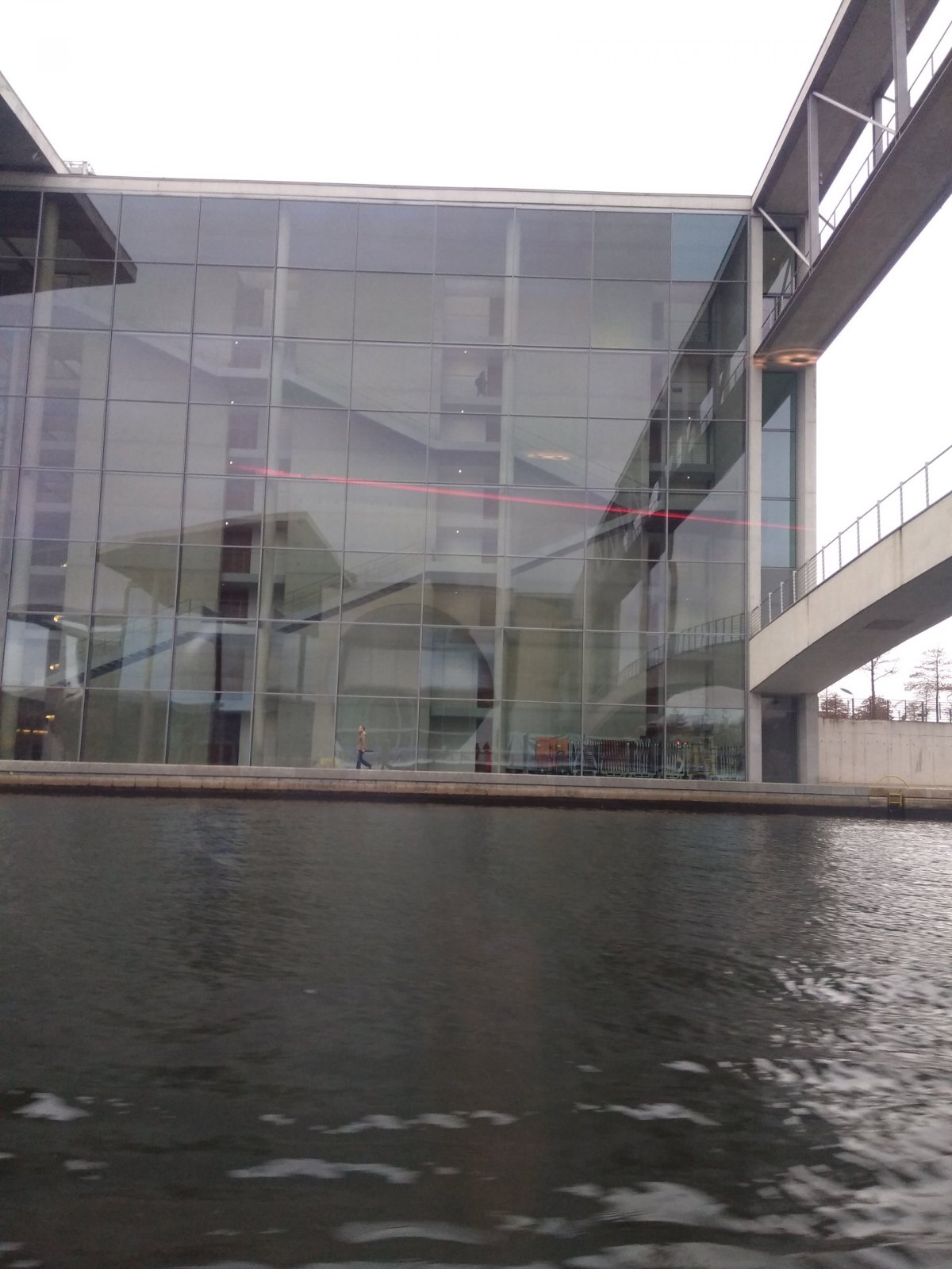 Zahřátí vínem jedeme s-bánhem k přístavišti výletních lodí na prohlídkovou trasu po Sprévě. Je tu poloprázdno, teplo a podávají zde jídlo i nápoje. Podobně jako všude, kde lze vidět město z řeky, je to nová perspektiva a zcela jiné pohledy. Horní paluba je nekrytá a hrozně tam fouká. Je to vždycky jen na chvíli a pár fotek a honem zase do kabiny do tepla.