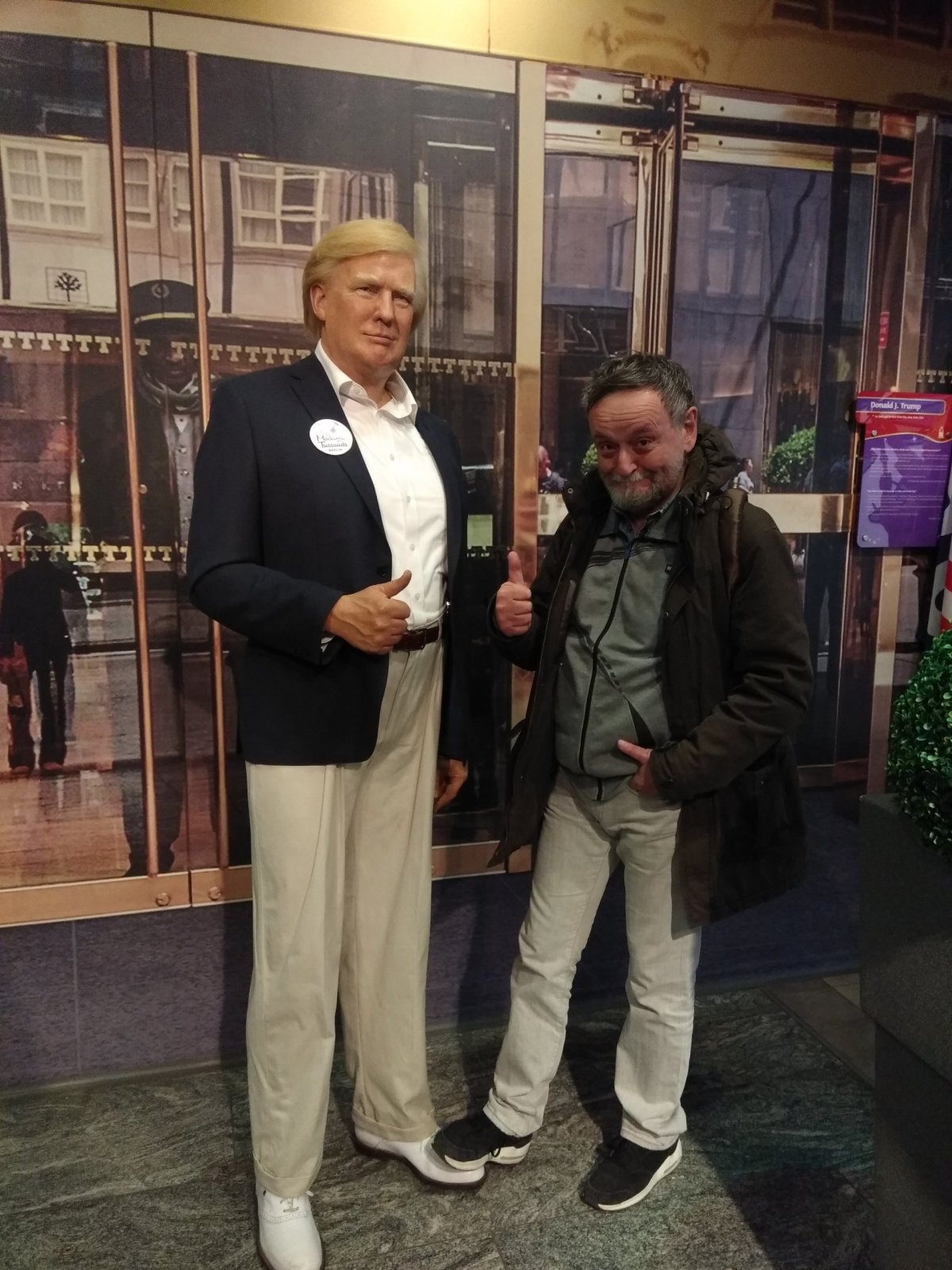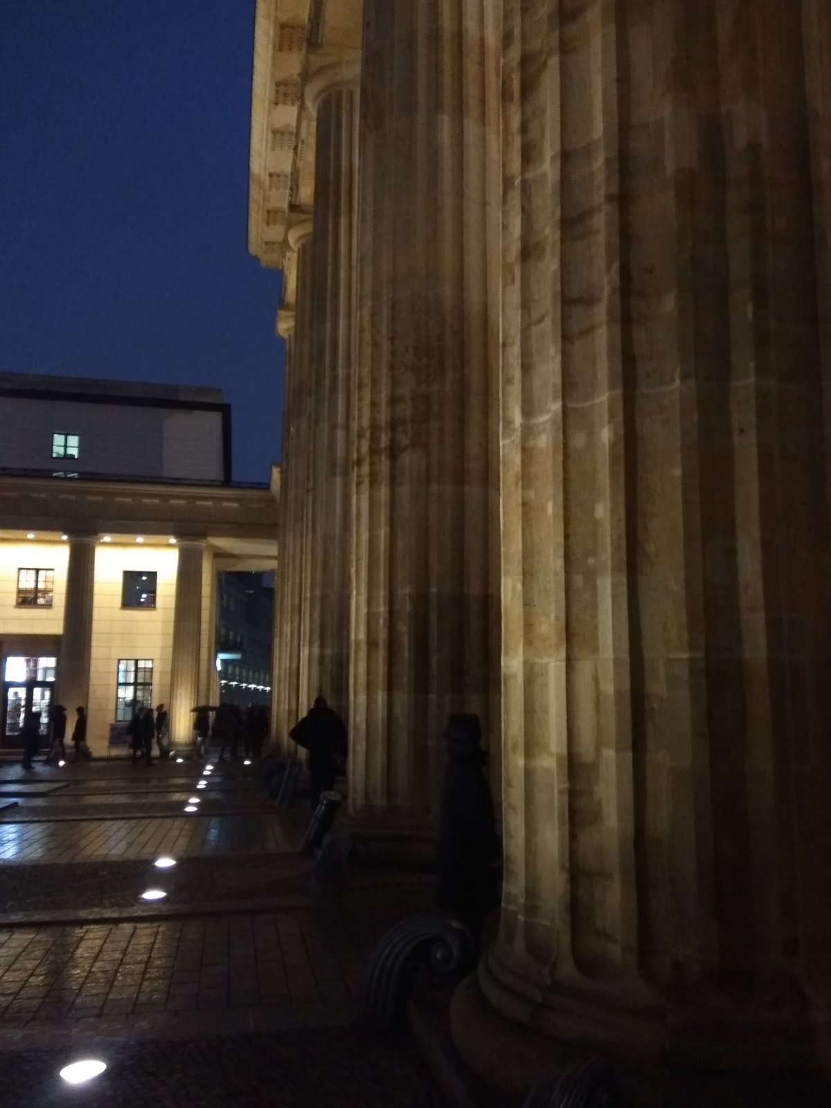 Je odpoledne a začíná se kazit počasí, začalo pršet. Motáme se kolem Braniborské brány a Raichstágu. Pozoruji davy potencionálních návštěvníků, většina z nich nemá dopředu zajištěný vstup a bezradně postává v neuspořádané frontě. Musím si zkontrolovat den a čas naší návštěvy. Déšť se sněhem. Nic moc. Jdeme se schovat do muzea Madame Tussaud. Před třiceti lety jsem navštívil to původní v Londýně ale manželka to panoptikum ještě neviděla. Je tu sucho a teplo. Když to člověk pozoruje s patřičným nadhledem, tak je to docela sranda.