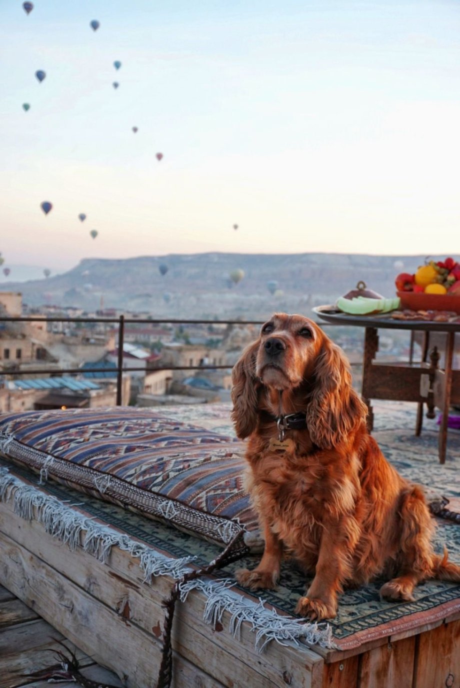 Ubytování jsem hledala přes http://www.booking.com a omylem (to se tak prostě někdy stane) jsem zabookovala jeden z nejslavnějších hotelů v okolí - Sultan Cave Suites (http://www.sultancavesuites.com/en), za noc pro dva jsme zaplatili 2 100 Kč i se snídaní. Musím uznat, že pokoj ve skále, kde se v klidu vyspíte, vysprchujete a připojíte na wifi mi přišel dost fajn za tu cenu. Turecká snídaně byla bezkonkurenční, personál milý a dokonce tam bydlela hvězda Instagramu (doufám, že se máš v psím nebi dobře!) fenka kokršpaněla Izmir (https://www.instagram.com/izmir_sultan/).