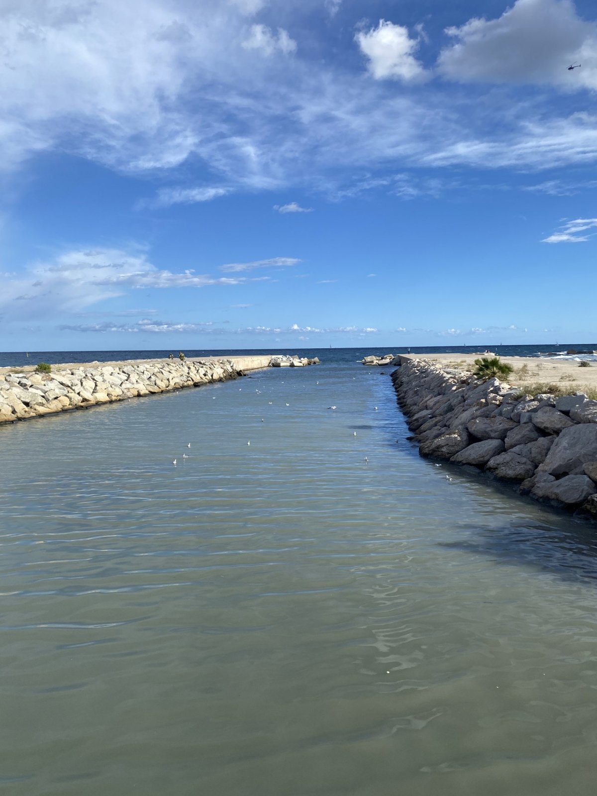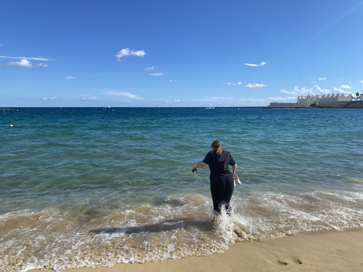 Protože bylo opravdu velké teplo, stavily jsme se cestou zpátky na pláži. Plavky jsme sice neměly, koho by taky napadlo si je na přelomu září a října brát, ale po kolena jsme do moře vešly a trochu se tak ochladily. Prošly se po pláži a v plážovém baru si daly mojito. Tak jsme trošku oslavily náš vydařený výlet. Před sebou jsme měly poslední noc v Barceloně.