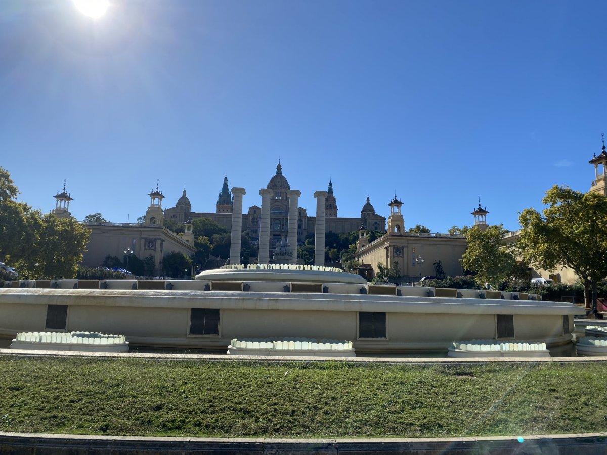 Z parku de la Ciutadella jsme se vrátily zpět k akváriu, do přístavu a pokračovaly dál k parku - Parc de Montjuïc. I když se už stmívalo a honily se mraky, nijak jsme nespěchaly a procházku parkem si užívaly. Byly jsme opravdu rády, že jsme se rozhodly nejet metrem, ale jít po svých, protože v parku jsme natrefily na spoustu vyhlídkových míst, které nabízely nádherné výhledy na přístav i Barcelonu, a které bychom v metru rozhodně neviděly. K magické fontáně jsme došly už téměř za tmy. Bohužel fontána nebyla v provozu. Jak jsme později zjistily, tak díky horkému a suchému létu byla fontána v provozu vždy jen na krátkou chvíli 2x za den. Trochu zklamány jsme se již za úplné tmy vracely zpátky domů.