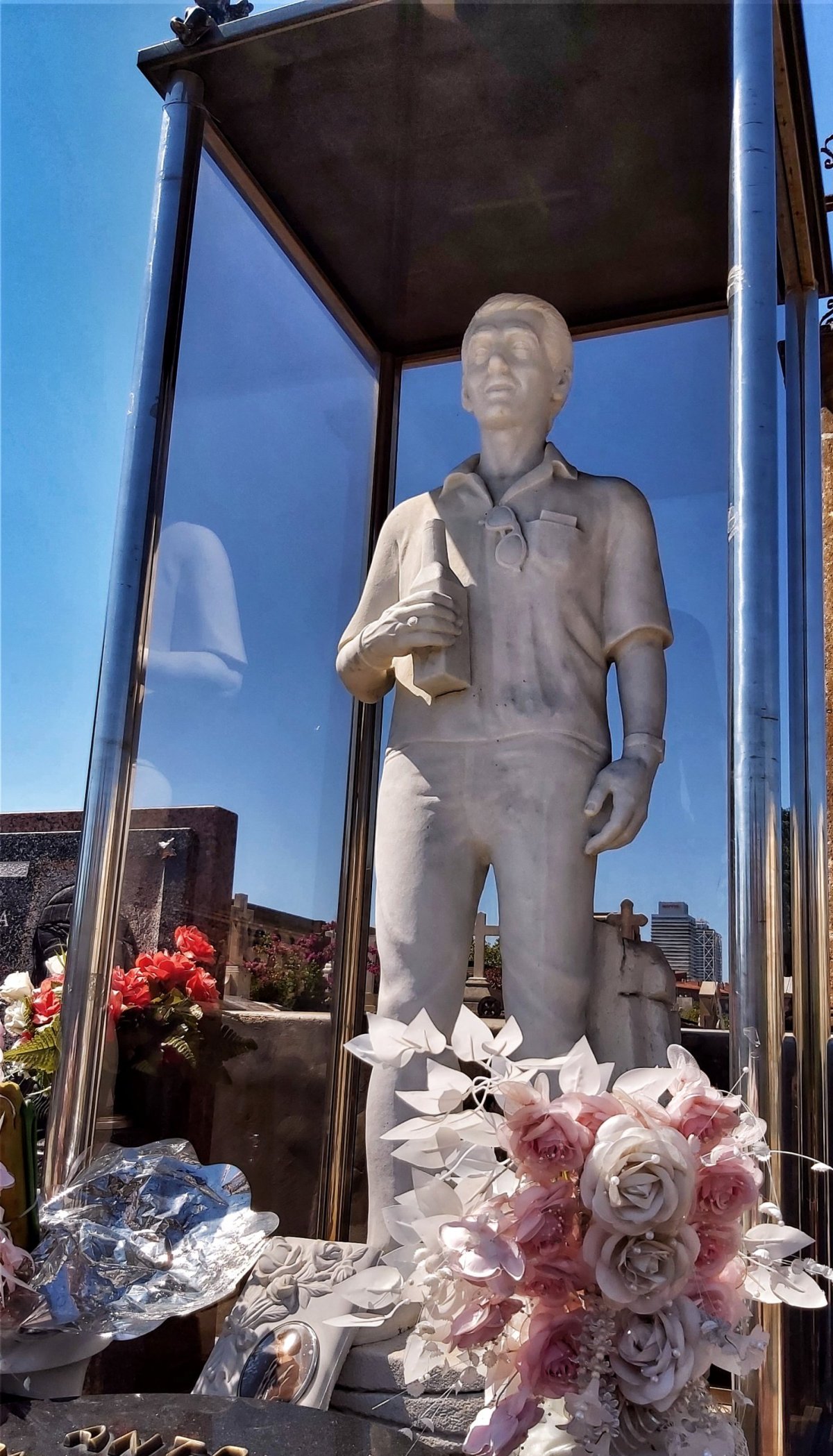 „Ikonická socha El petó de la mort (Polibek smrti) od Jaume Barba.. Když jsme k soše, která mě uhranula už na fotografii, dorazily, úplně mi to na chvíli vzalo dech. Socha ve skutečnosti není tak mohutná, jak se na obrázku zdálo, ale rozhodně ohromí. Kostnatá smrt líbající na čelo mladého muže… Jedná se o sochu, kterou si nechal na zakázku vyrobit muž, kterému zemřel v opravdu mladém věku jeho syn. Smrt tohoto mladíka je spojována s rozverným životním stylem bohatého mladého hraběte. Otec se nemohl smířit se svou ztrátou a aby si zachoval obraz svého syna, obrátil se na nejlepšího sochaře Španělska. Říká se, že poté, co viděl otec hotový pomník svého syna, seděl u něj tři dny. Potom už ale nemohl najít sílu, aby hrob svého syna ještě někdy navštívil.. Za sebe musím říct, že pohled na tuto sochu vyvolá opravdu bouřku emocí. Socha vypadá strašidelně, na druhou stranu i velice něžně. Každý si v ní najdete to, co zrovna potřebuje. Mě osobně prolétla hlavou jediná myšlenka. Že život je opravdu krátký a že není čas na zbytečnosti. Na hádky, křivdy, smutky nebo jen přemýšlení nad věcmi, které nemůžeme ovlivnit. Že je opravdu potřeba žít, dokud to jde. Žít, ne přežívat. Dělat věci, které nás těší a baví a současně se chovat k druhým tak, abychom se každý další den mohli podívat do zrcadla. Právě tady a teď vzpomínám na všechny, které smrt políbila předčasně… Myslím na to, jaké je po nich prázdno a jak chybí. Vzpomínám na společný čas - v tu dobu tak "obyčejný" a dnes tak vyjímečný... Přemýšlím, zda žili život takový, jaký si přáli nebo zda ŽIVOT odkládali na Někdy, sestru Nikdy. Tuhle sochu budu mít dlouho před očima a vzpomenu si na ní vždycky, když budu "přežívat". Protože tohle je cíl. Cíl naší životní cesty, který máme všichni společný. A je jen na nás, jakou cestou k tomu cíli dojdeme. Já osobně to chci vzít “zkratkou”, je to sice dál, zato horší cesta…“