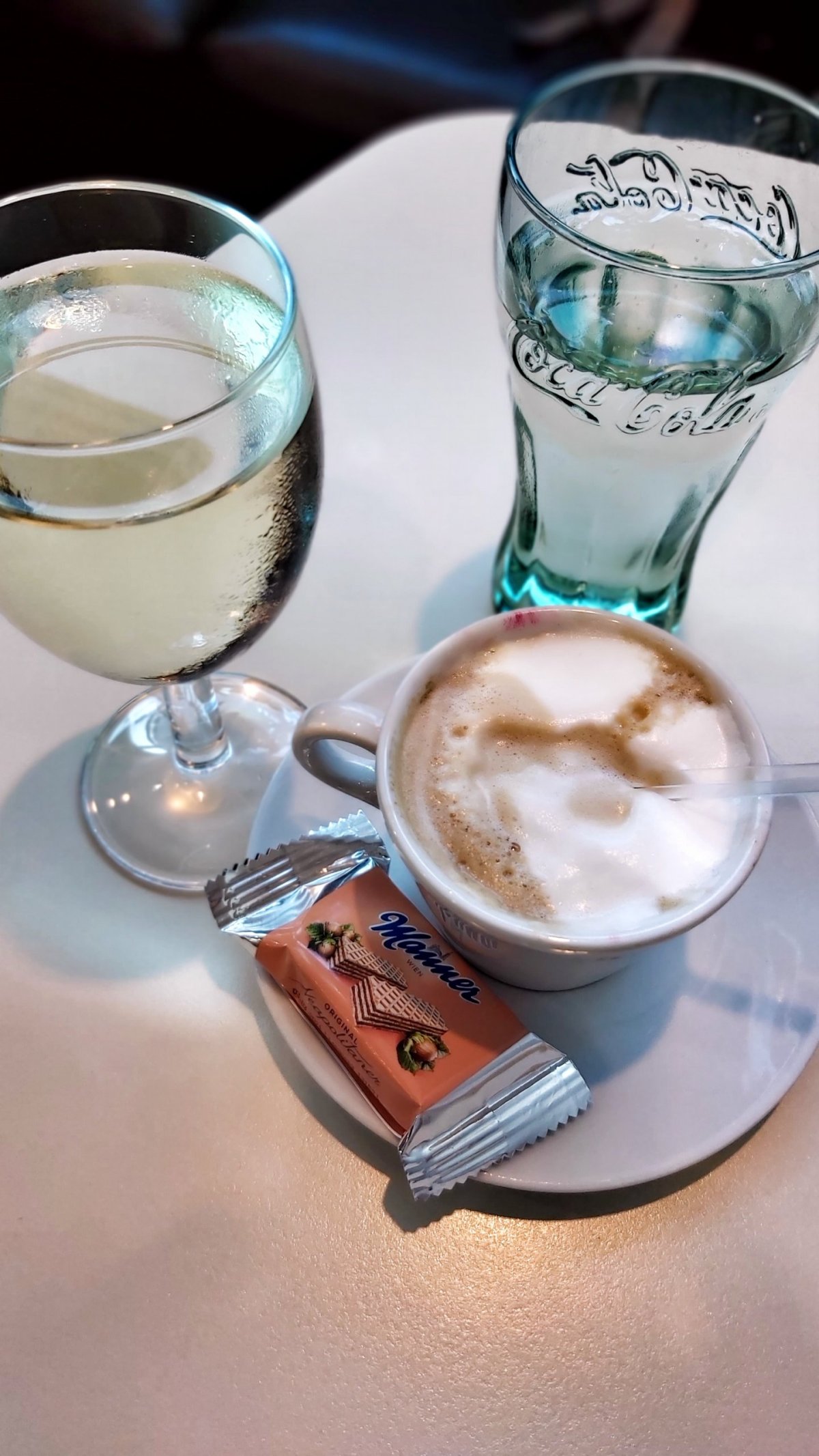 Salonek katastrofa, a to nejsem fiflena. Jestli za to někdo zaplatí 700 Kč, je to cvok!!! Jídlo nula, oříšky a jednotlivě balené lotosky (karamelové sušenky) ke kávě, pak ta káva, nealko z postmixu, pivo a víno (jeden druh a jak lze jistě tušit dle slova katastrofa v úvodu - Pálava to není). Jo a to víno ještě na požádání.. Žádala jsem třikrát, dva drinky jsem si spolu s Prymulou vzala do letadla..