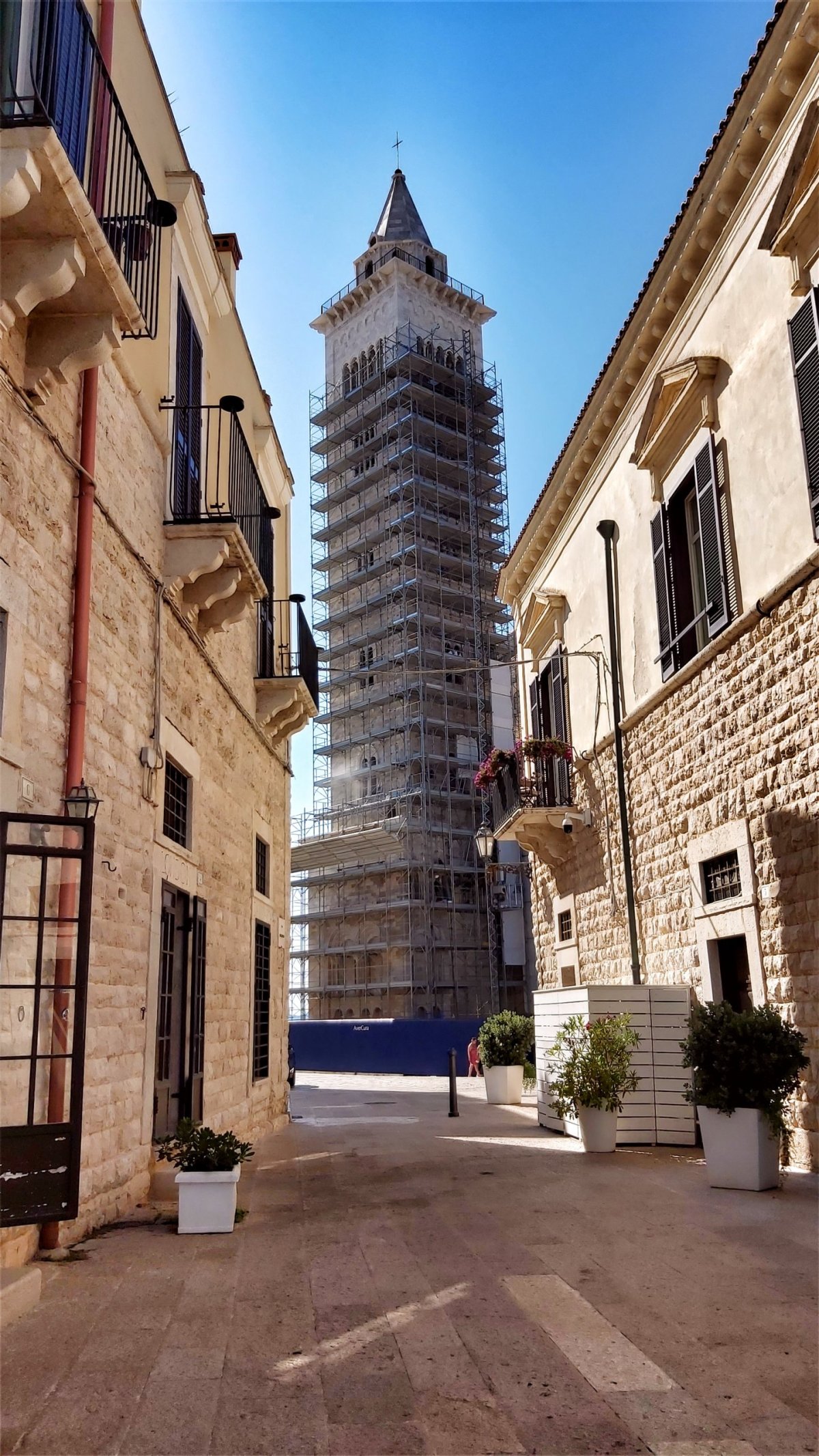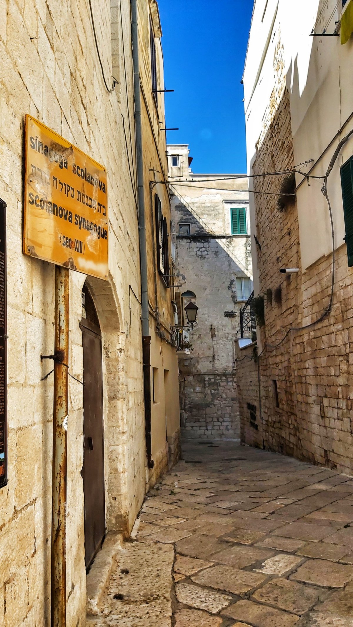 Po odpočinku u moře obcházím přístav a zabloudím kousek do centra - CENTRO STORICO. Celé historické městečko je jedna velká podívaná. Je zde opravdu velká spousta krásných historických budov a nahlížet do jejich starobylých dvorů, to je prostě senzace. Z památek doporučuji Church of Saint Clare, Caccetta Palace a Chiesa d'Ognissanti, templářský románský kostel. Nádherné místo je i Sinagoga di Scolanova a podloubí kolem. Na chvilku si zde připadáte jak v Jeruzalémě.