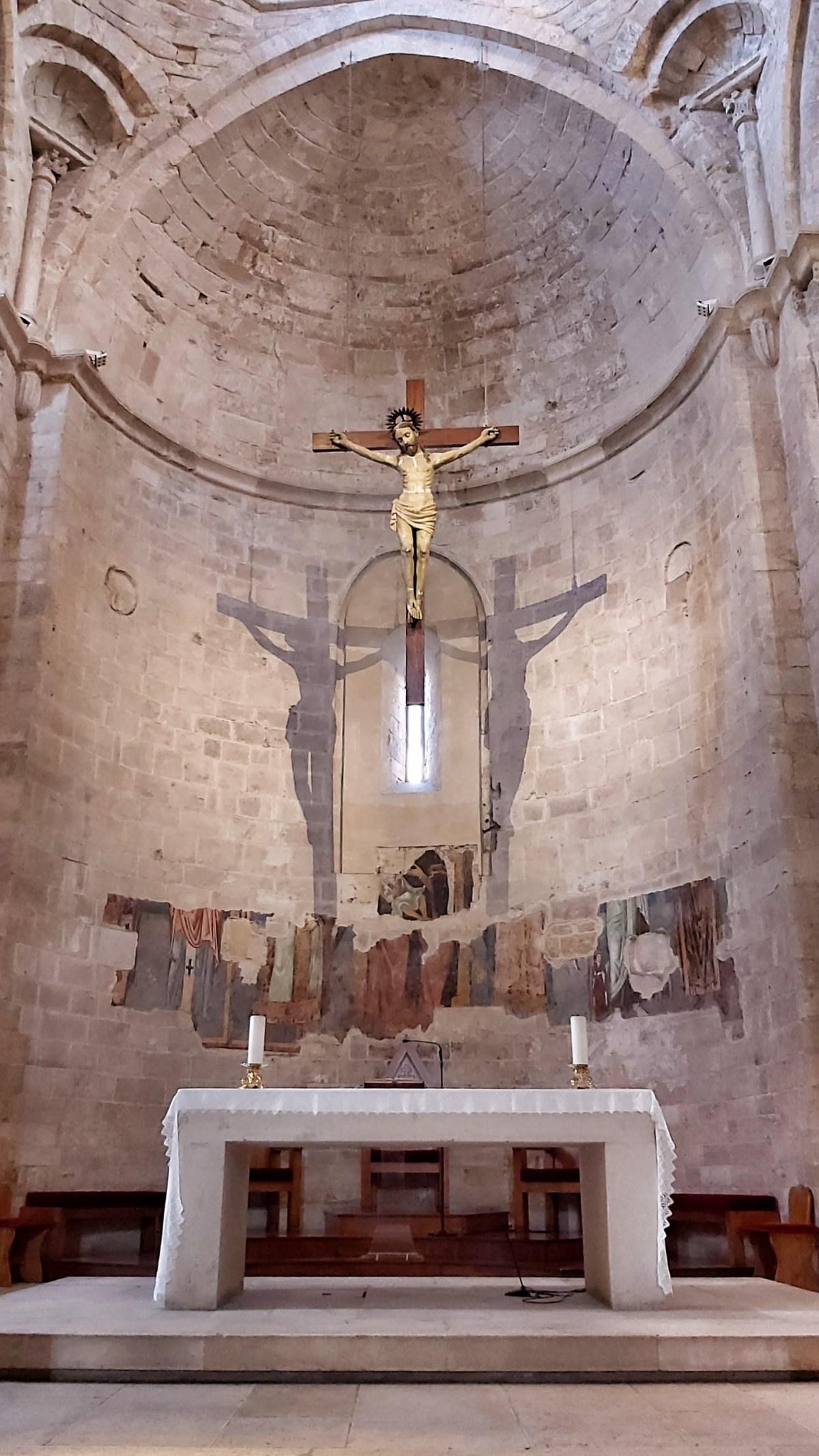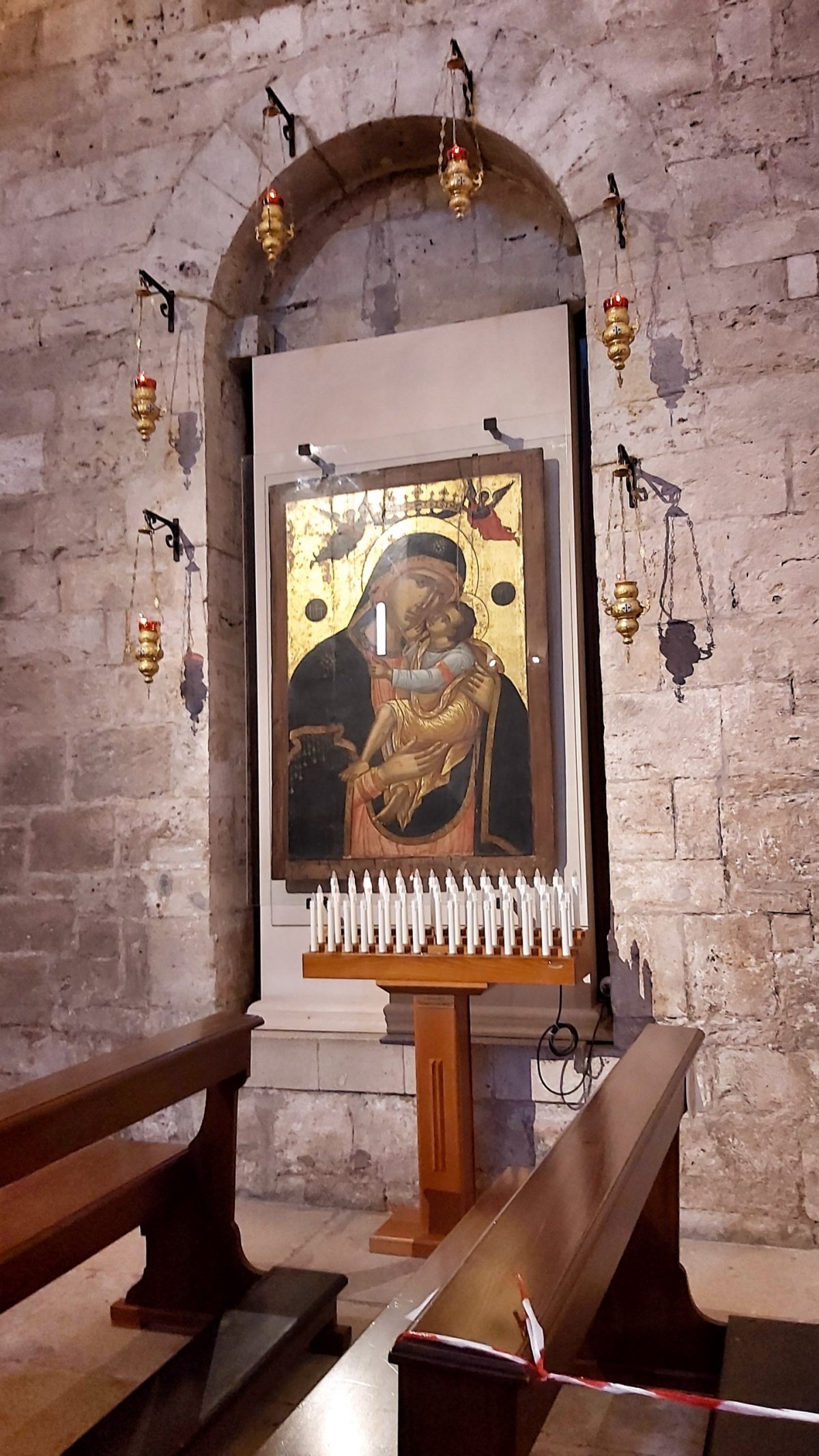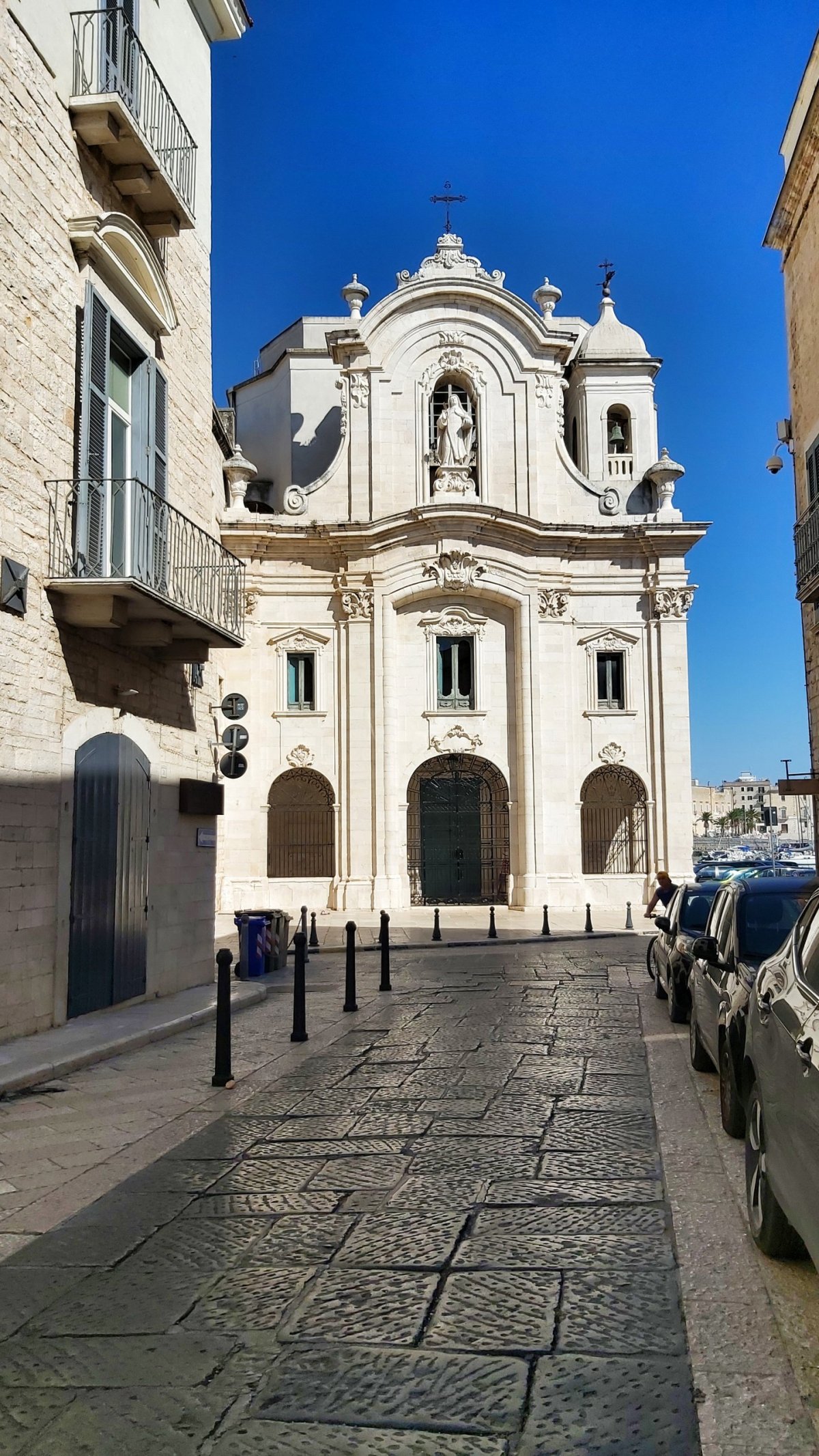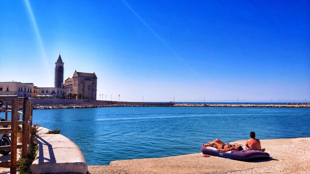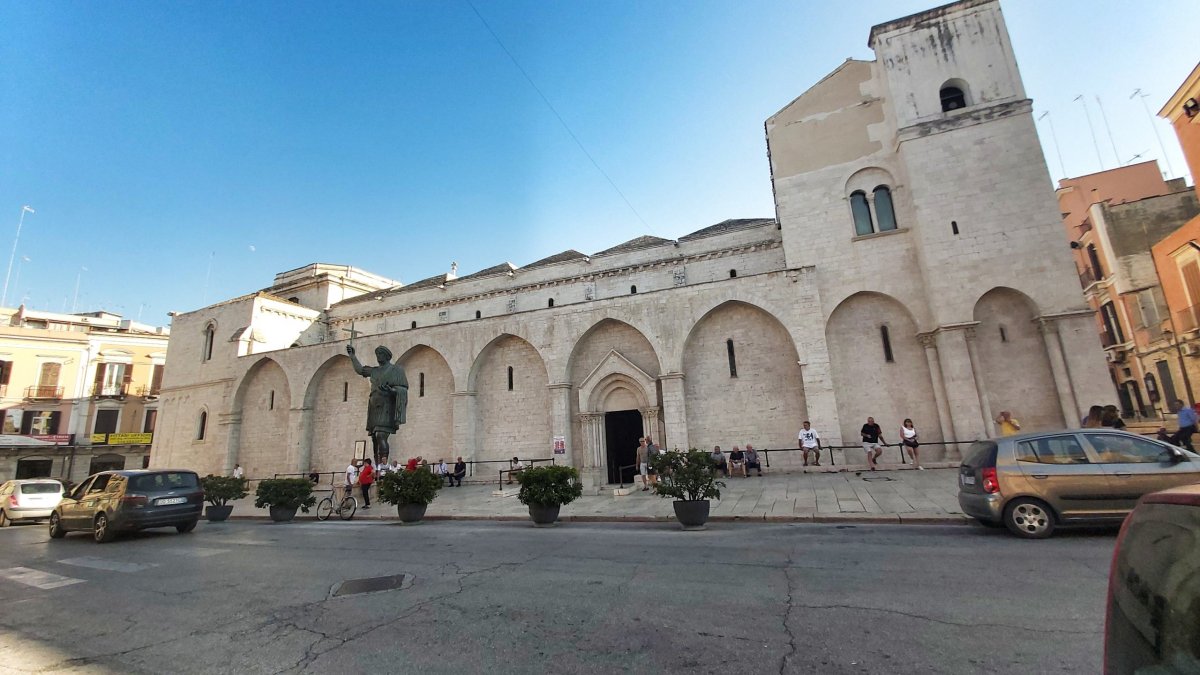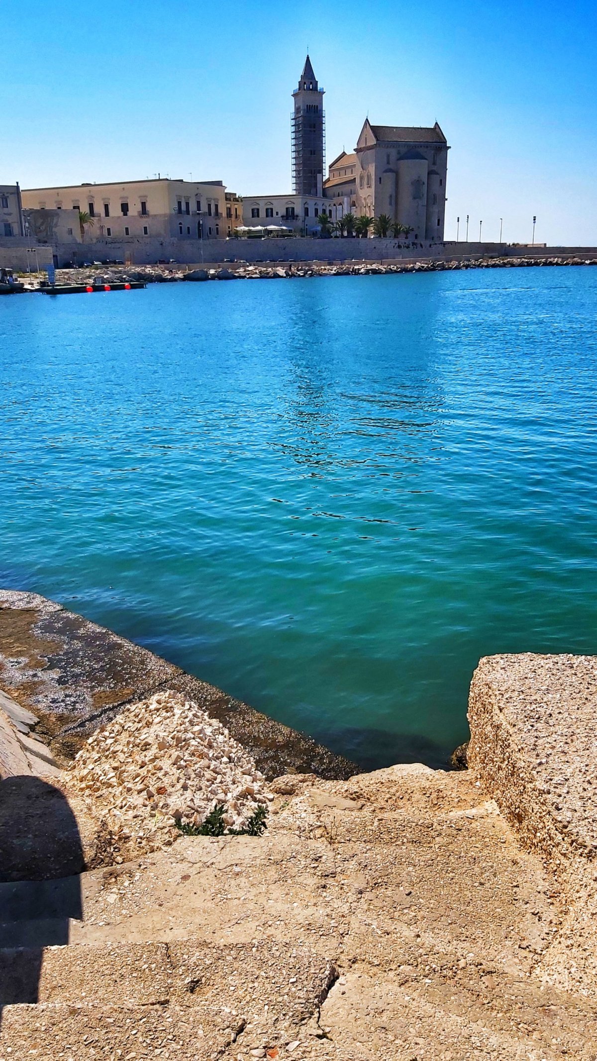 První zastávka je KATEDRÁLA TRANI. Nejen že je to velkolepá stavba sama o sobě, ale tyčí se přímo na břehu Jaderského moře, což jí dodává teprv nádech romantiky. Pohled na ni bere dech a je to přesně ta stavba, jejíž obrysy, zvuk varhan linoucí se z jejích útrob a mořské pozadí bude mít člověk už navždy v hlavě jako dokonalou kompozici jednoho dokonalého místa. Hlavou mi zde proletí podobná místa. Živé záblesky.. Kostel na břehu moře v Ohridu, maják na Sardinii, katedrála v nikaragujském Leonu, socha Ježíše v Juan del Sur… A teď nově - Katedrála Trani. Mimochodem - je zasvěcená svatému Mikuláši, stejně jako před pár dny boží kostel ve Znojmě..
