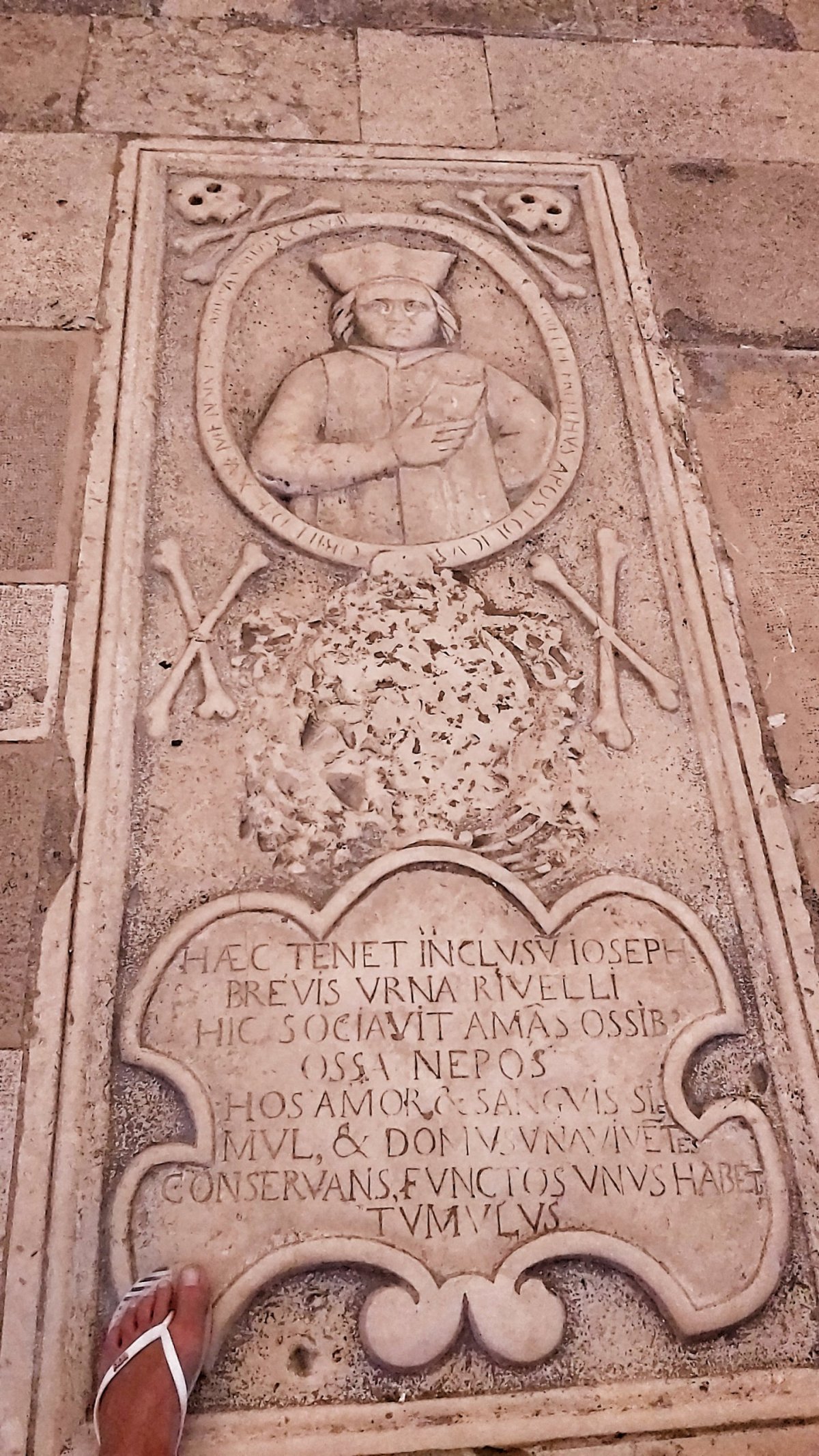 Hned po východu z nádraží je krásný park. Ani ne tak uspořádáním, jako tím, kolik je zde lidí a jak to zde žije. První místo, kam mě vede navigace, je Chiesa Santo Sepolcro. Před tímto románským kostelíkem na rohu opravdu frekventované ulice stojí zmíněná, pozdně antická, bronzová socha. Velikost je 5,11 metrů. Známá je jako „Kolos z Berletty“. Důvodem, že tato postava nemá správné proporce, je zásah jednoho dominikánského mnicha, který s povolením krále roztavil spodní polovinu sochy, aby získal materiál na zvon. Teprve v roce 1491 byly torzu znovu navráceny paže a nohy.