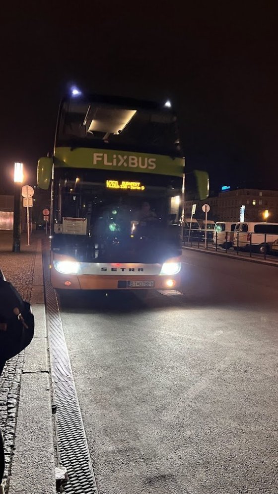 Je 3:00 ráno. Čekáme na autobus a on samozřejmě nikde. Napadne mě se podívat do appky Flixbusu a s překvapením vidím toho srandistu někde u Drážďan.
