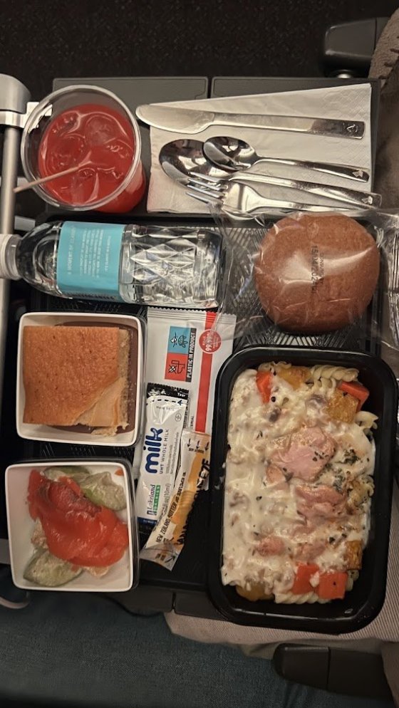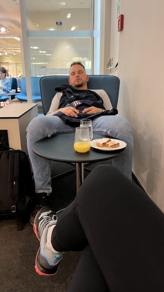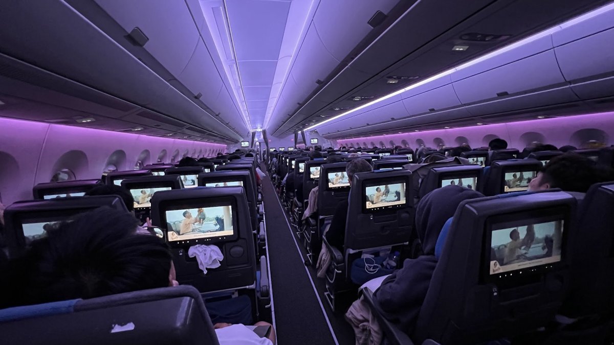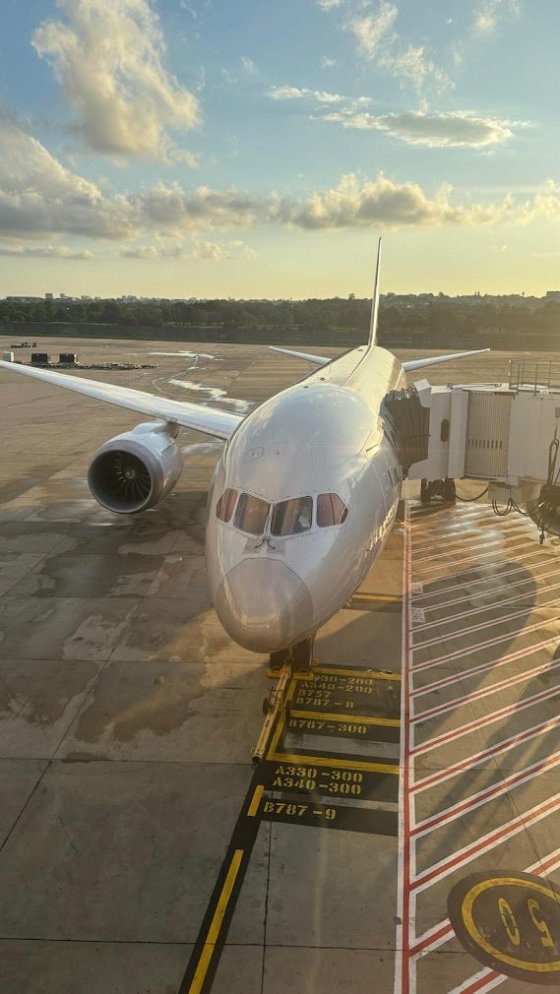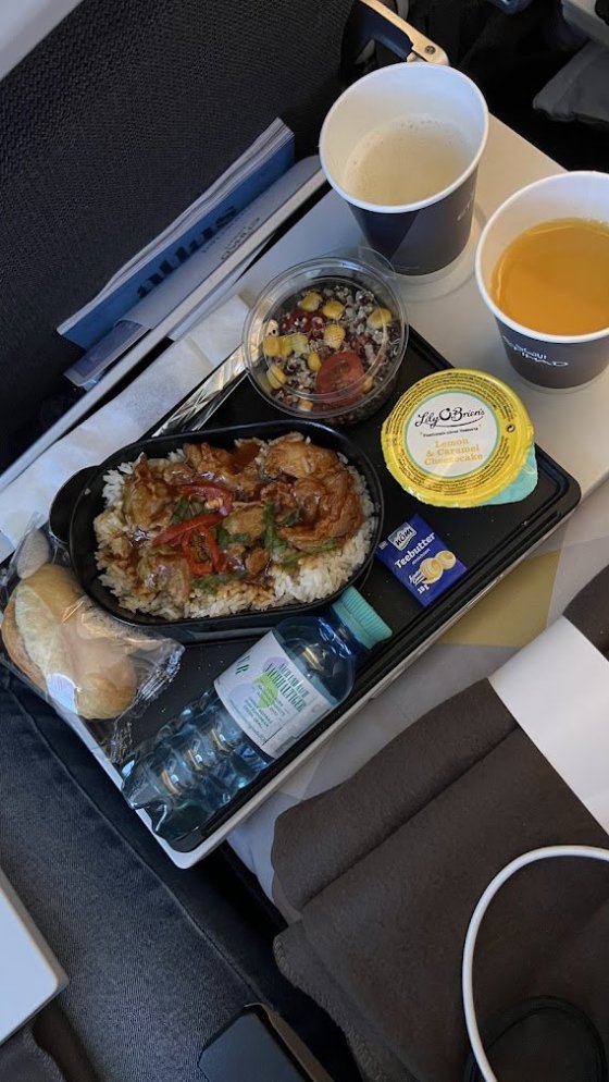 To co jsme zažili po nástupu do letadla, opravdu nechcete. Boeing 787-9 měl interiér ve stavu, jako by 5 let létal něgde mezi Rwandou a Jižním Sudánem. Sedadla v žalostném stavu, popraskané plasty, bordel. U své sedačky jsem našel na zemi kapesník od krve. To, že se z letadla odlupoval lak a křídla byla doplněna o vkusné lepící pásky, už ani nemluvím. Bohužel upgrade nebyl možný ani na palubě. Bizz plus byl již plný. Měli jsme ale štěstí. Velmi milý personál nám byl nápomocný, když viděl kulhající Adélku a dostali jsme 3 volná sedadla uprostřed letadla, kde si mohla lehnout.
