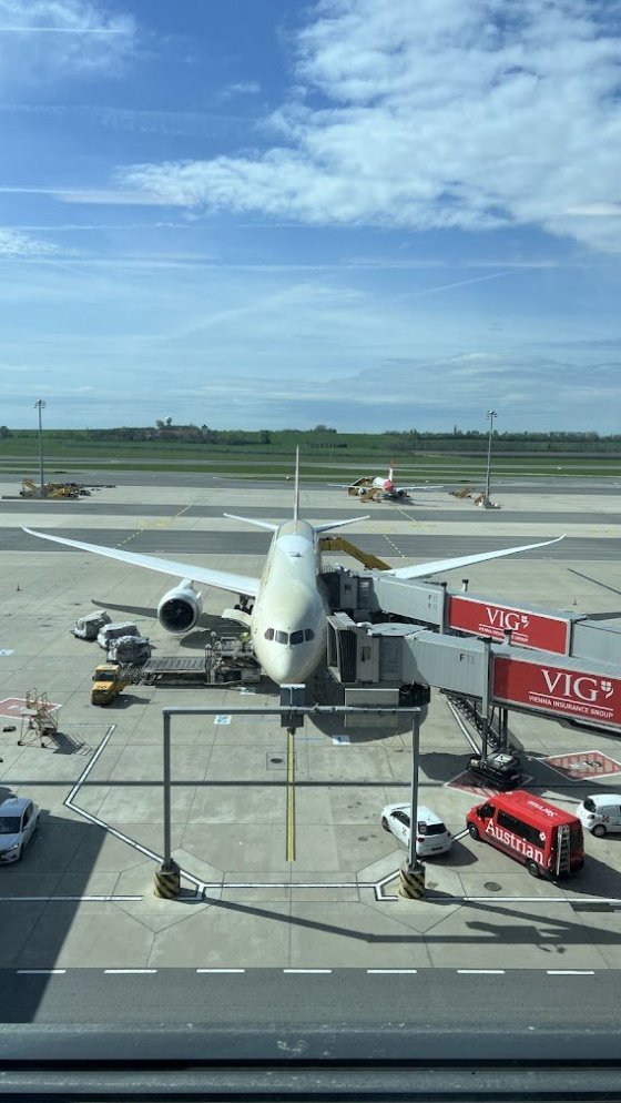 Po cca 1,5hod. zpoždění, autobus příjíždí. Místo panoramy za doplatek, máme krásný výhled na clonítko řidiče. Někde na 50km D1 upadáme do kómatu a mé instinkty mě probouzí, pouze na okamžik, v Brně. Cesta se neskutečně vleče a s cca hodinovým zpožděním přijíždíme na letiště Schwechat.