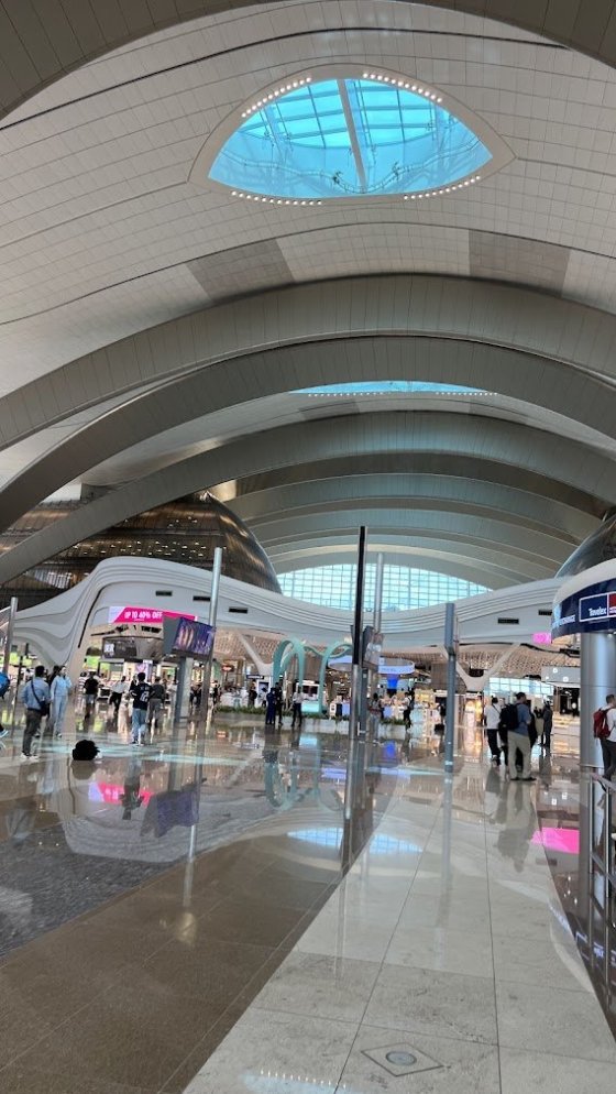 Nový terminál je opravdový architektonický skvost. Odbaveni jsme za pár minut. Šetříme volné vstupy do salónků a snídáme v TGI Fridays.
