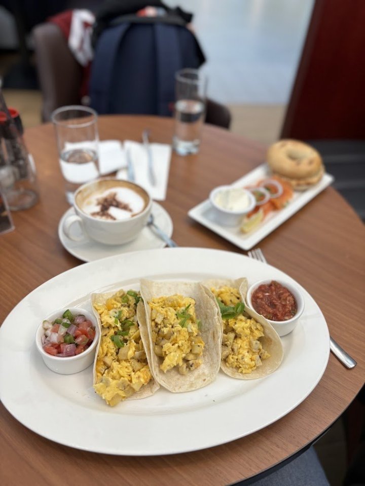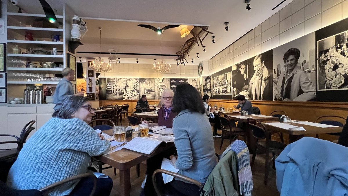 Náročnou procházku městem zakončujeme v Michelinské, české restauraci v Bohemian National Hall. Samozřejmě jsem si objednal točené plzeňské se smaženým sýrem a tatarkou. Adélka wienerschnitzel s bramborovým salátem! Je tu fajn česky mluvící obsluha a atmosféra je příjemná. Dáme si jako dezert palačinku se zmrzlinou a tvarohové knedlíky v pivní omáčce. Už jen se dopravit na hotel a zalehnout.