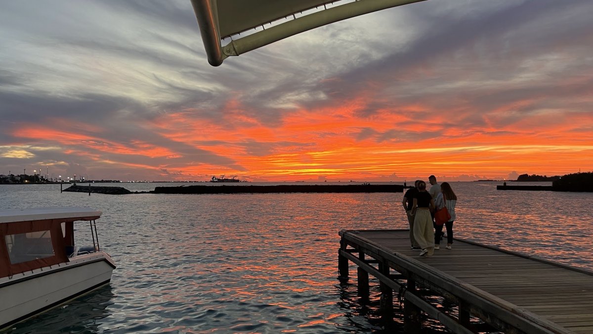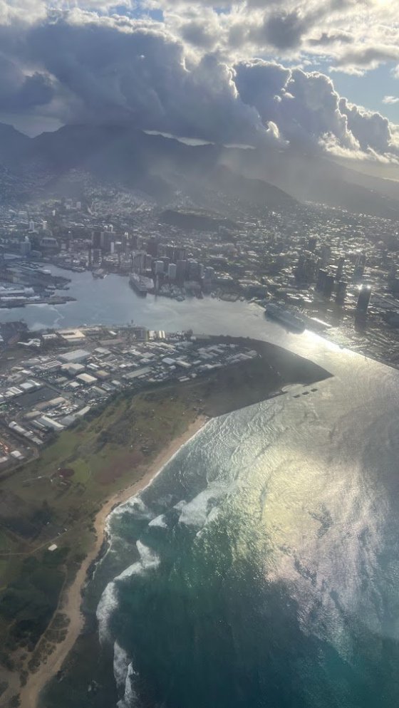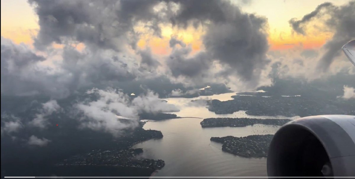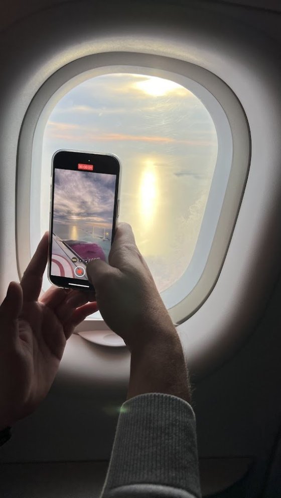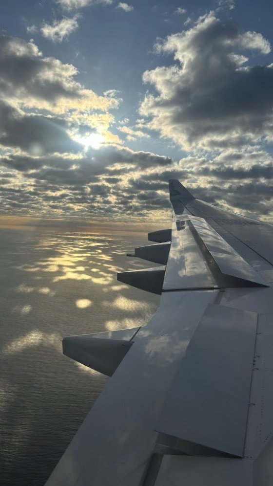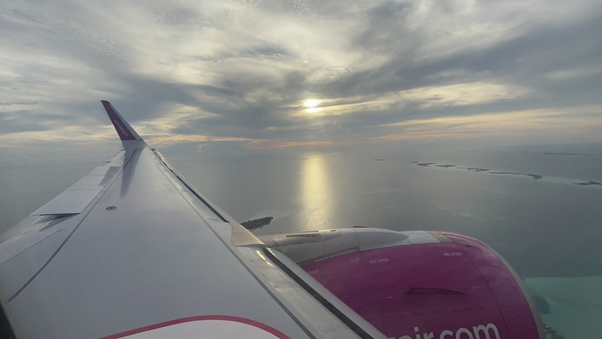 Opravdu příjemný let kazí pouze hloupí a neukáznění cestující. Letušky jsou značně nasra*é. Škoda slov se nad tím rozepisovat. Snažíme se je ignorovat a těsně před přistáním pozorujeme kouzelné ostrůvky při západu slunce.