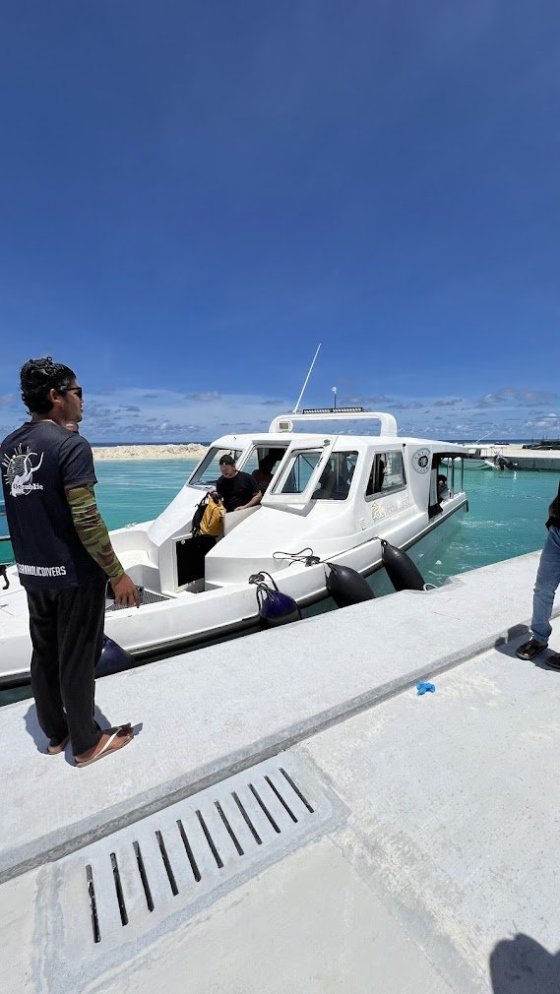 Speedboat odjíždí v 11:00. Po snídani sledujeme společně hydroplány, které přistávají těsně nad našimi hlavami. Hulhumale není zrovna místo, kam byste chtěli jet na dovolenou. Je tu celkem bordel a pláže nejsou jak ty vystřižené z katalogu. My jsme ale už natěšení na Dhigurah.
