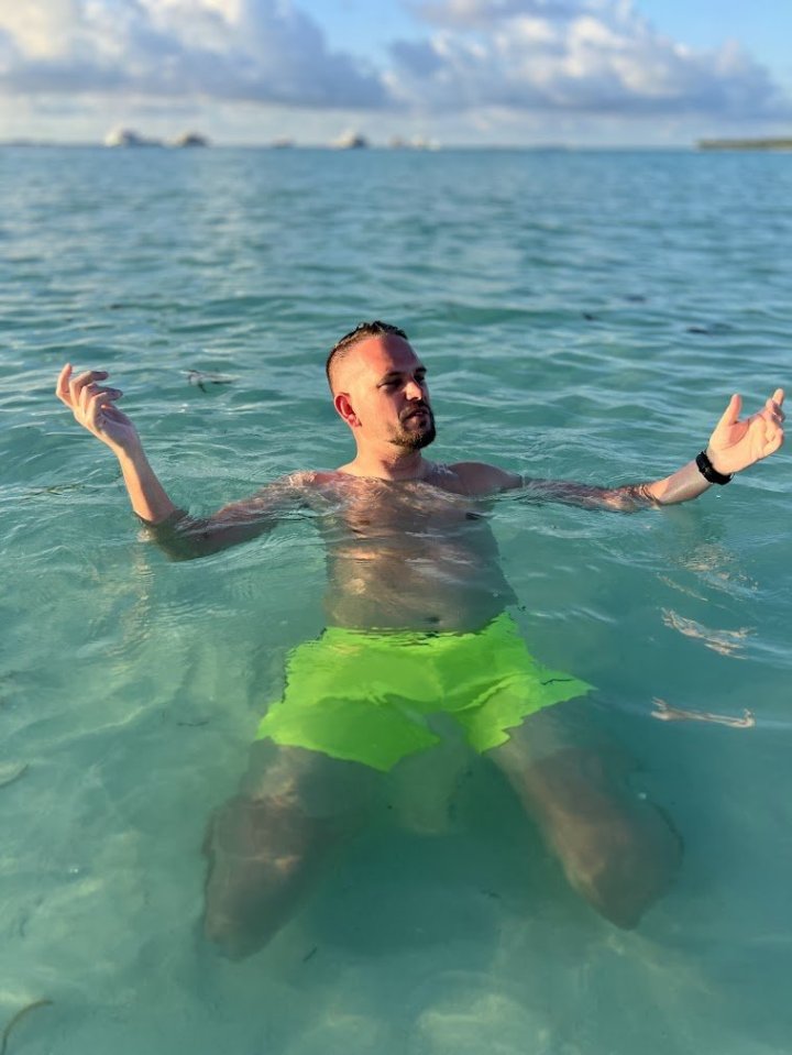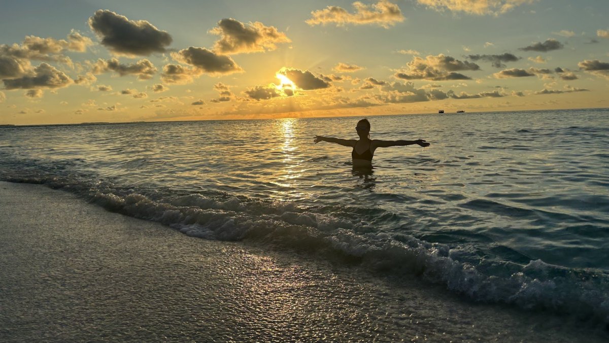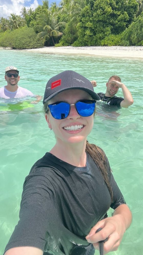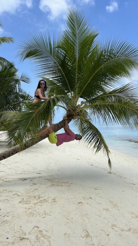 Jsme tu krom 2 párů úplně sami. Počasí nám přeje. V mělké vodě naháníme malé žraloky a vznikají opravdu, až kýčovité, fotky.