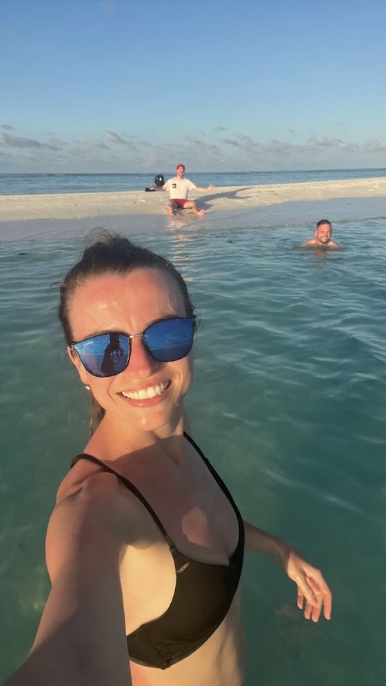 Jsme konečně sami. Náš spolucestující vyráží na dopolední výlet na manty. My se konečně pořádně vyspíme a po pozdní, vydatné snídani, míříme ve dvou opět na sandbank.