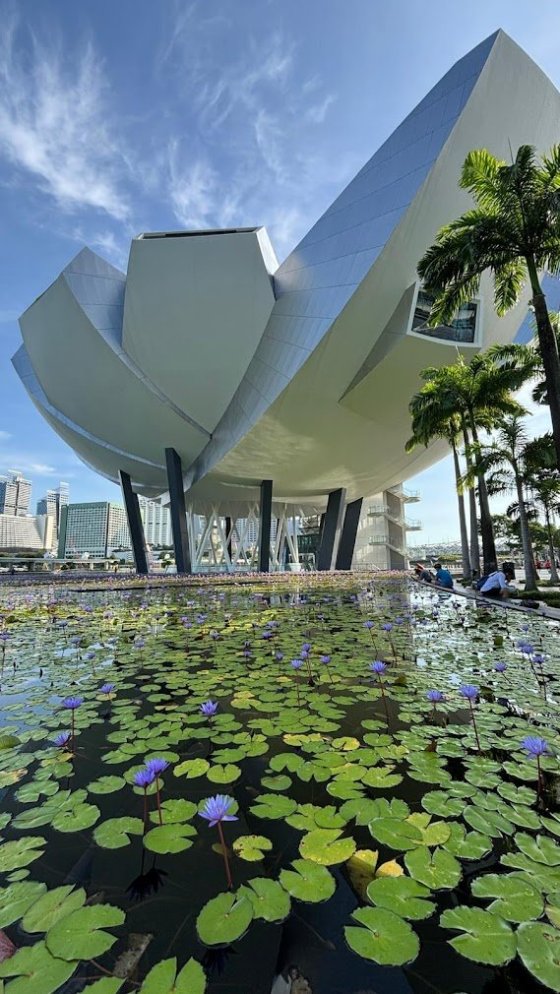 První singapurská zastávka, v rámci naší cesty, se nese zejména v poznávání místní architektury. Míříme metrem modré linky do stanice Bayfront. První wow-efekt se dostavuje hned za dveřmi nákupního centra, kde se nachází ;. Obdivujeme mrakodrapy a procházíme se promenádou směrem k Art Science Museum a Helix Bridge. Dokonalou atmosféru města, dokresluje příjemná hudba, linoucí se ze skrytých reproduktorů Bose z okolních kvetoucích keřů.