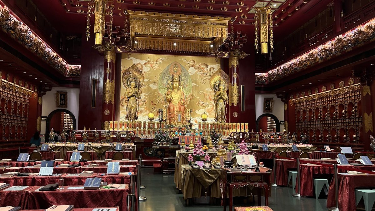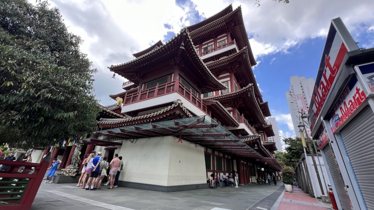 Dalšími zastávkami byly chrámy Sri Mariamman Temple a Budha Tooth Relic Temple, kde je vstup zdarma, čehož jsme využili.