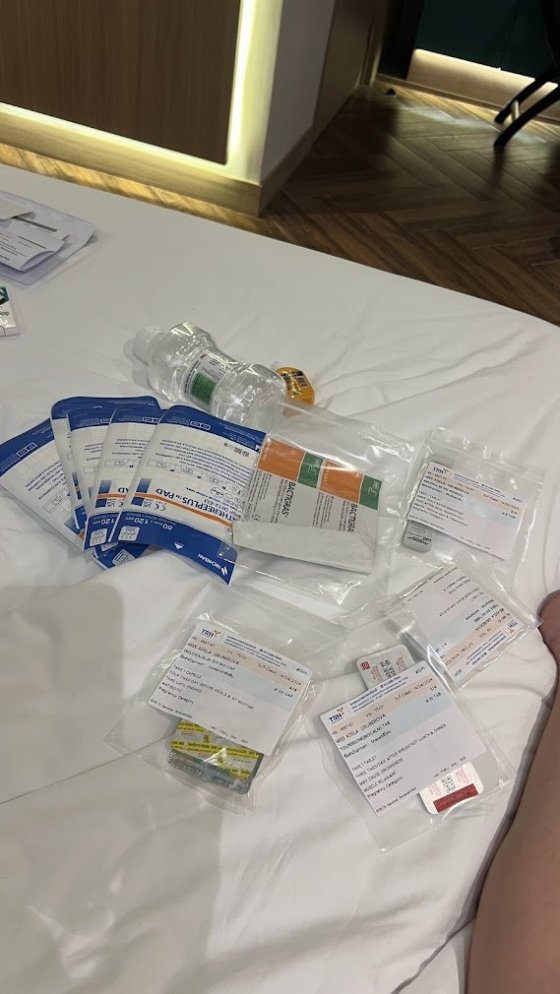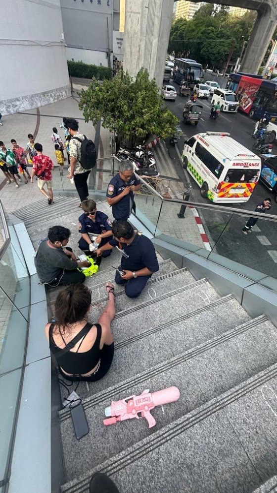 Posádka sanitky k nám běží. Jeden lékař ošetřuje a fixuje nohu. Druhému sděluji název naší pojišťovny. Klepou se mi ruce a zmateně hledám v telefonu potřebné dokumenty. Máme tu verdikt. Prý musíme na šití a na rentgen s nimi do nemocnice. Noha se lékařům vůbec nelíbí a nikomu z nás tato informace opravdu nepřidala. Velkou rychlostí se prodíráme ulicemi Bangkoku. Jedeme prý do nemocnice, která je smluvní s naší pojišťovnou.