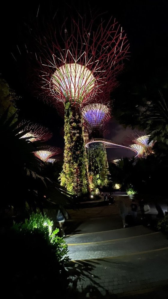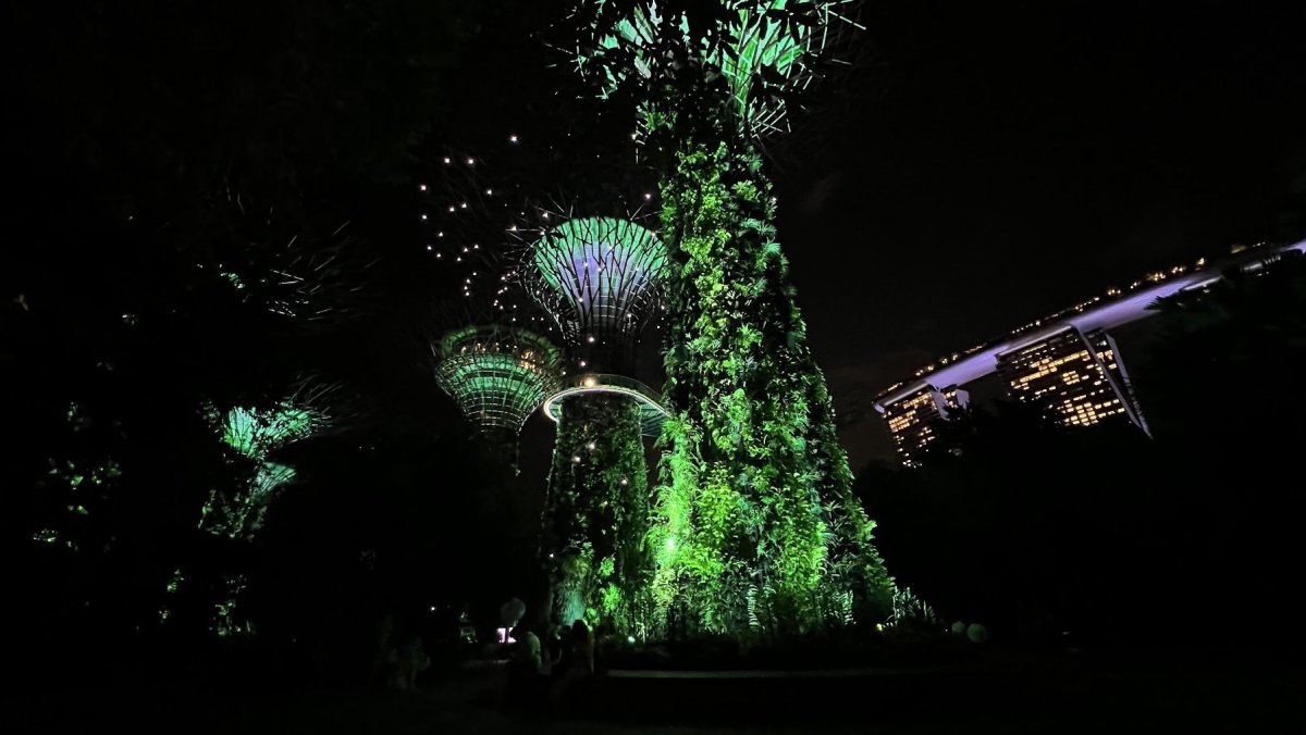 Cestou zpět fotíme obrovské Supertree grove. V noci ukazují svou plnou krásu. Prohlídku Singapuru zakončujeme v Marině u zpívající fontány. Je to impozantní představení.