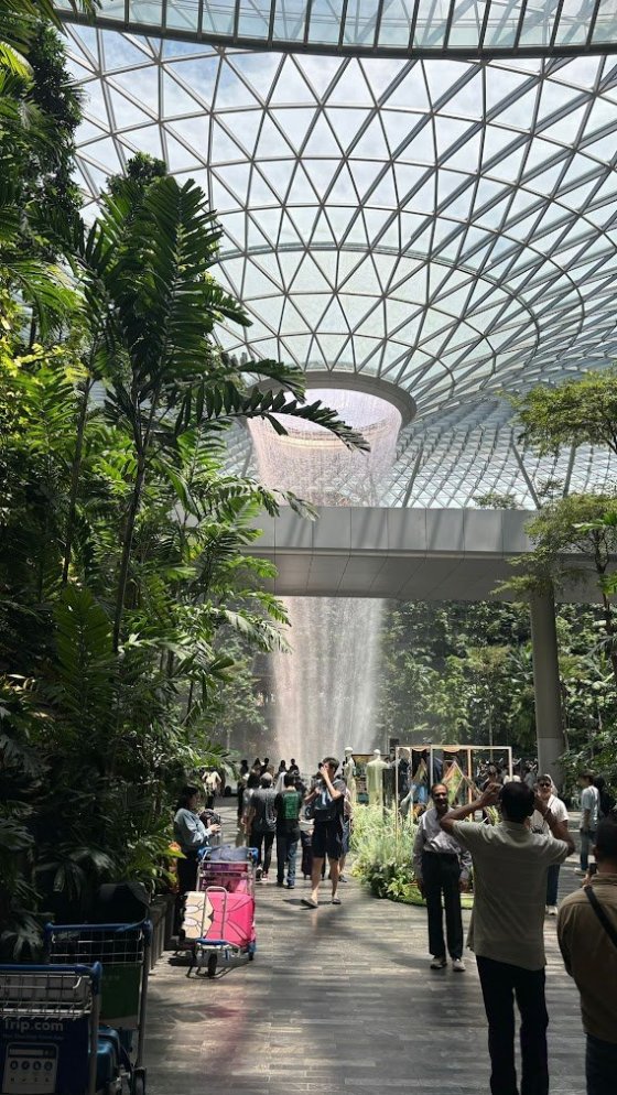 Nemíříme hned do metra. Potřebujeme odpočinek a načerpat potřebnou energii. Singapurské letiště Changi je jedna z top atrakcí tohoto města. Sedáme pod nejvyšším vodopádem v interiéru na světě, nasáváme atmosféru a relaxujeme. Jewel je nepopsatelná. Čas tu ubíhá neskutečně rychle, což nám vůbec nevadí. Po poklidném obědě v McDonalď s, s výhledem na vodopád, se vydáváme velmi, velmi pomalu do velkoměsta.