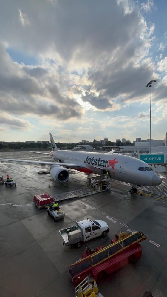 Letadlo odlétá v 9:05. Na ulici před hotelem odchytávám taxi a míříme na letiště. Trochu se obávám, zda se nasoukáme s nohou, která nejde ohnout do sedaček lowcostu. Letenky Bangkok- Singapur- Sydney, jsme zakoupili za krásných 4000,- u společnosti SCOOT. Airbus a321-NEO voněl novotou. Můj spolucestující je tak trochu "hobit" a vejde se do sedačky i s obvázanou, narovnanou nohou. Odlétáme opět na čas.