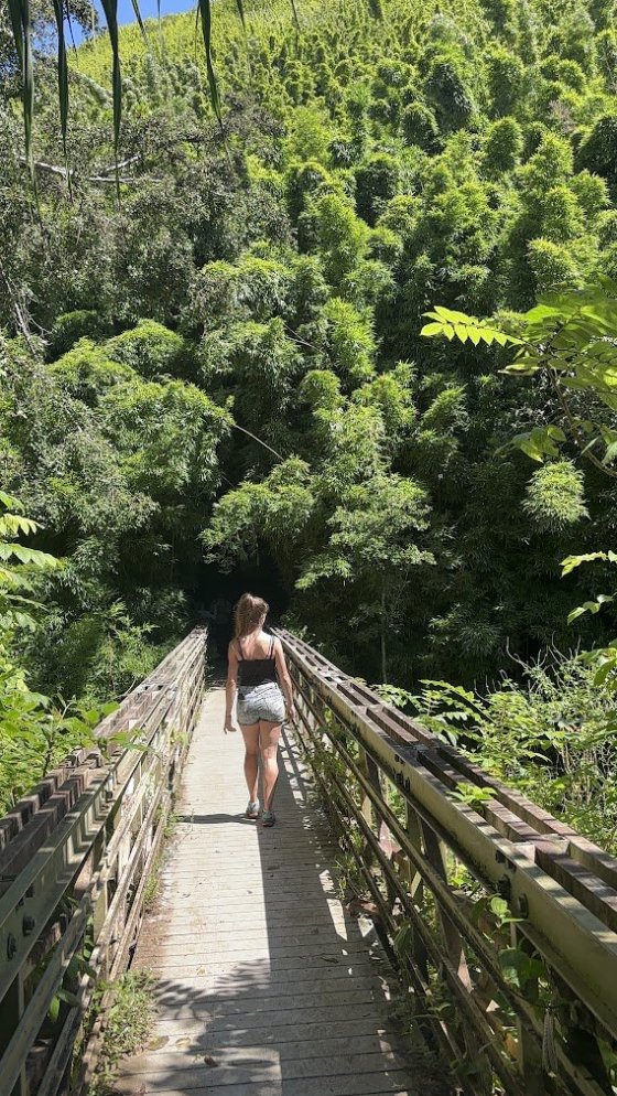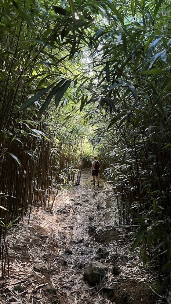Odpoledne nás už svrbý paty a chceme vyrazit někam do přírody. Plán nemáme. Nakonec vyrážíme po Road to Hana udělat pár fotek duhového eukaliptového lesa. Nedaleko nacházíme i krátký, ale opravdu pěkný trail v bambusovém porostu podél posvátné řeky Papaaea. Nacházíme zde i krásný vodopád a po krátkém bloudění mezi bambusovým porostem se ocitáme na pastvině plné krav. Kocháme se západem slunce u rezervoáru a přemítáme o tom zda Maui bylo, nebo nebylo tak krásné, jak jsme si ho představovali...